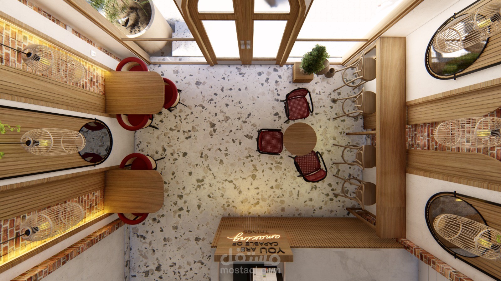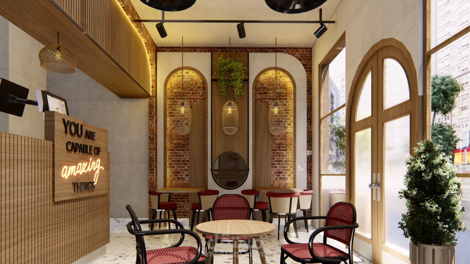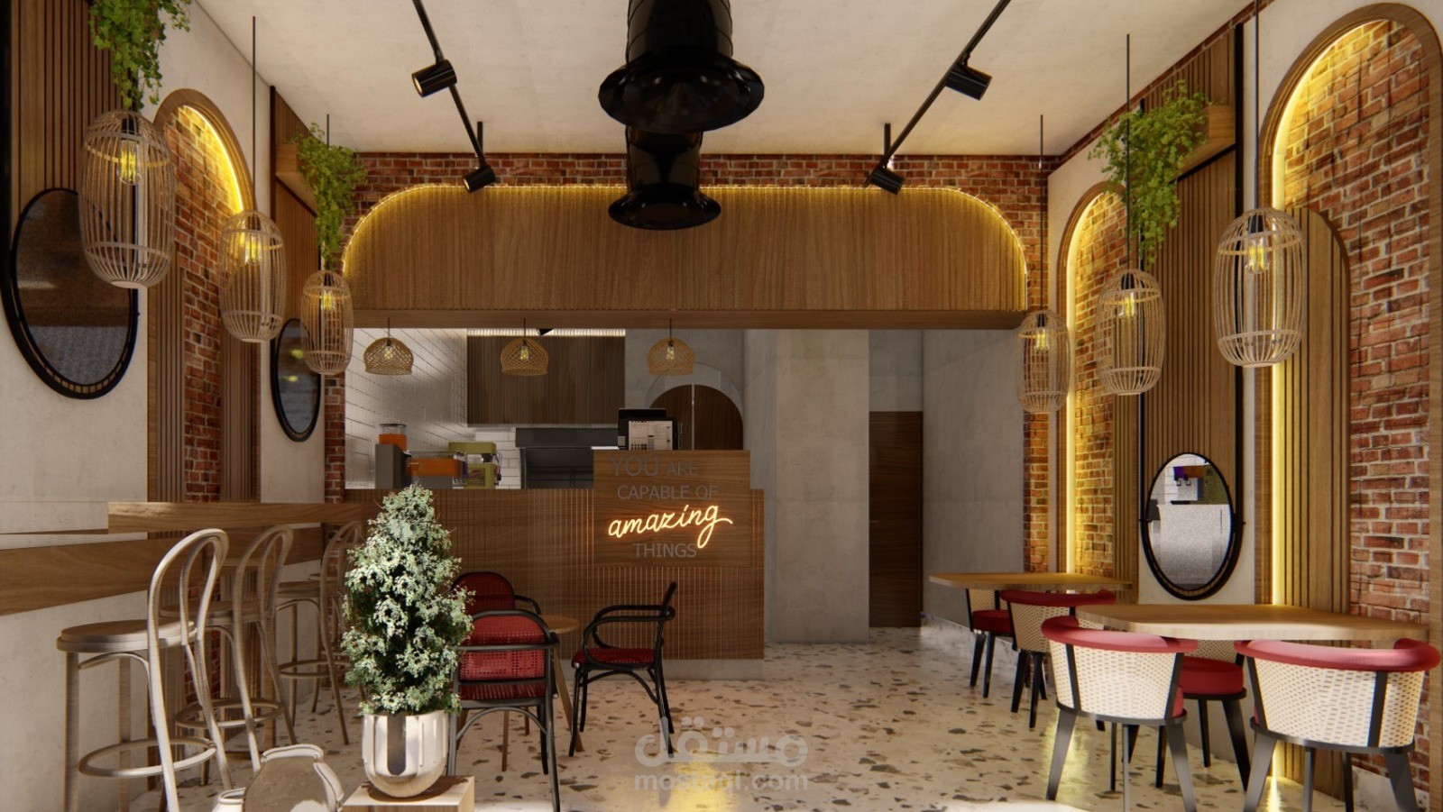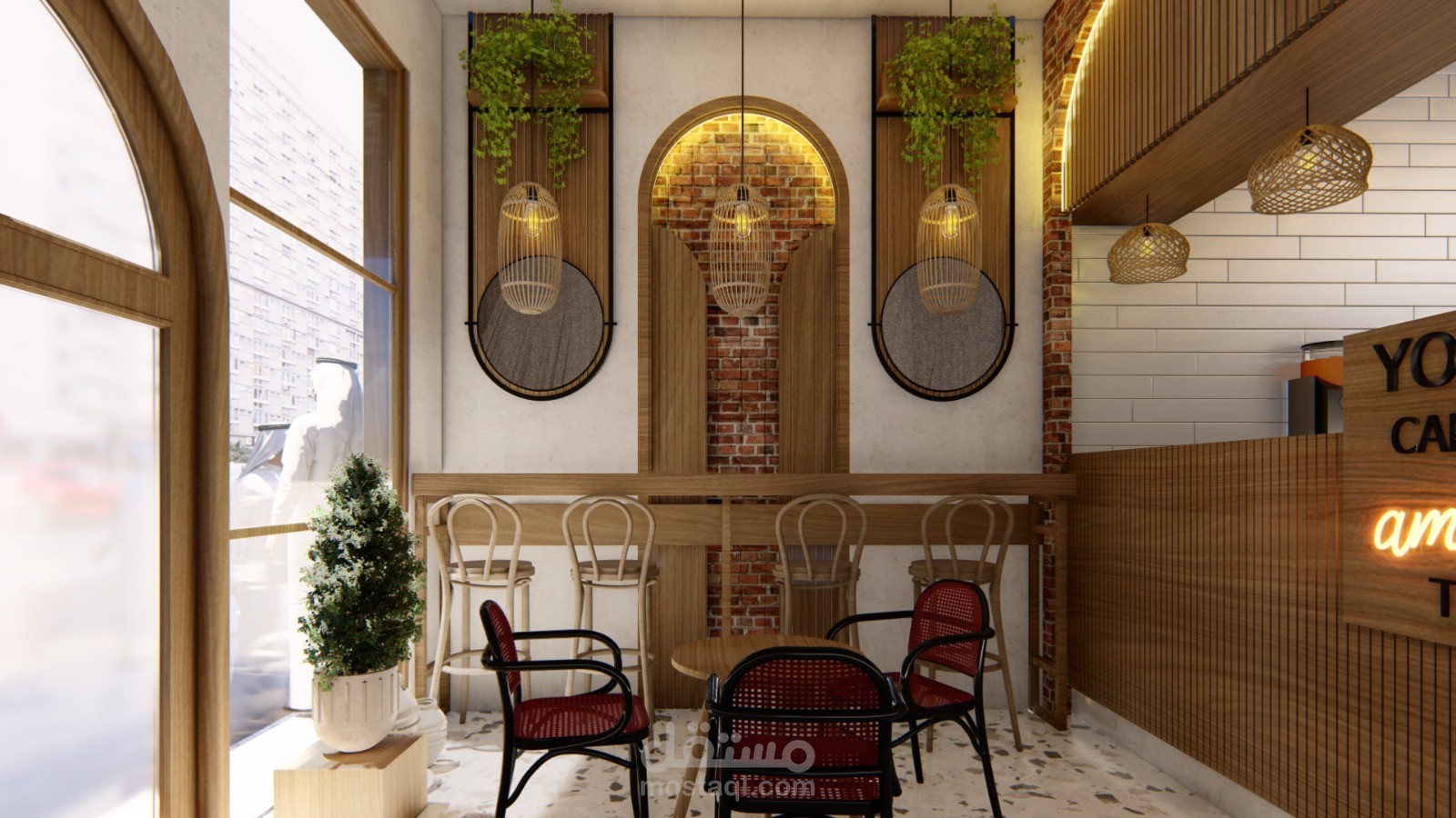 قمت بتصميم مطعم صغير للسناكات الخفيفة على طراز الحجازي