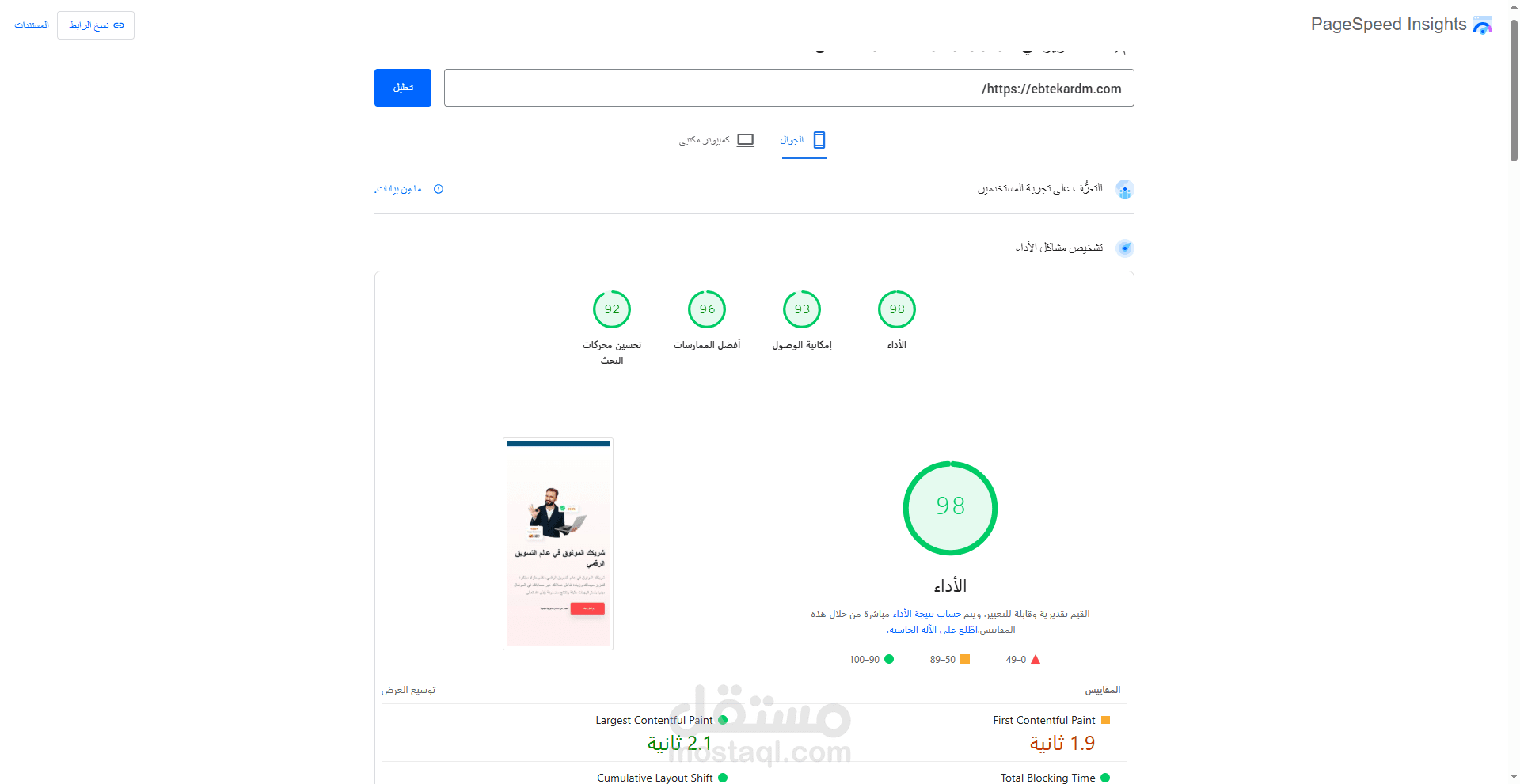 ويحتوي على العديد من الخصائص المميزات الاخرى وسرعة الموقع فوق 85%