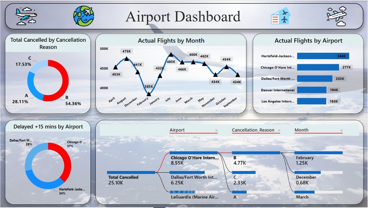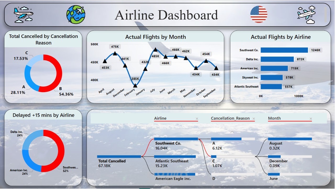 This repository presents an in-depth analysis of airline and airport operations for US flights in 2015, based on data sourced from Kaggle. The project encompasses a full lifecycle of data handling from extraction through visualization, focusing on 5,000,000+ commercial airline flights records.
