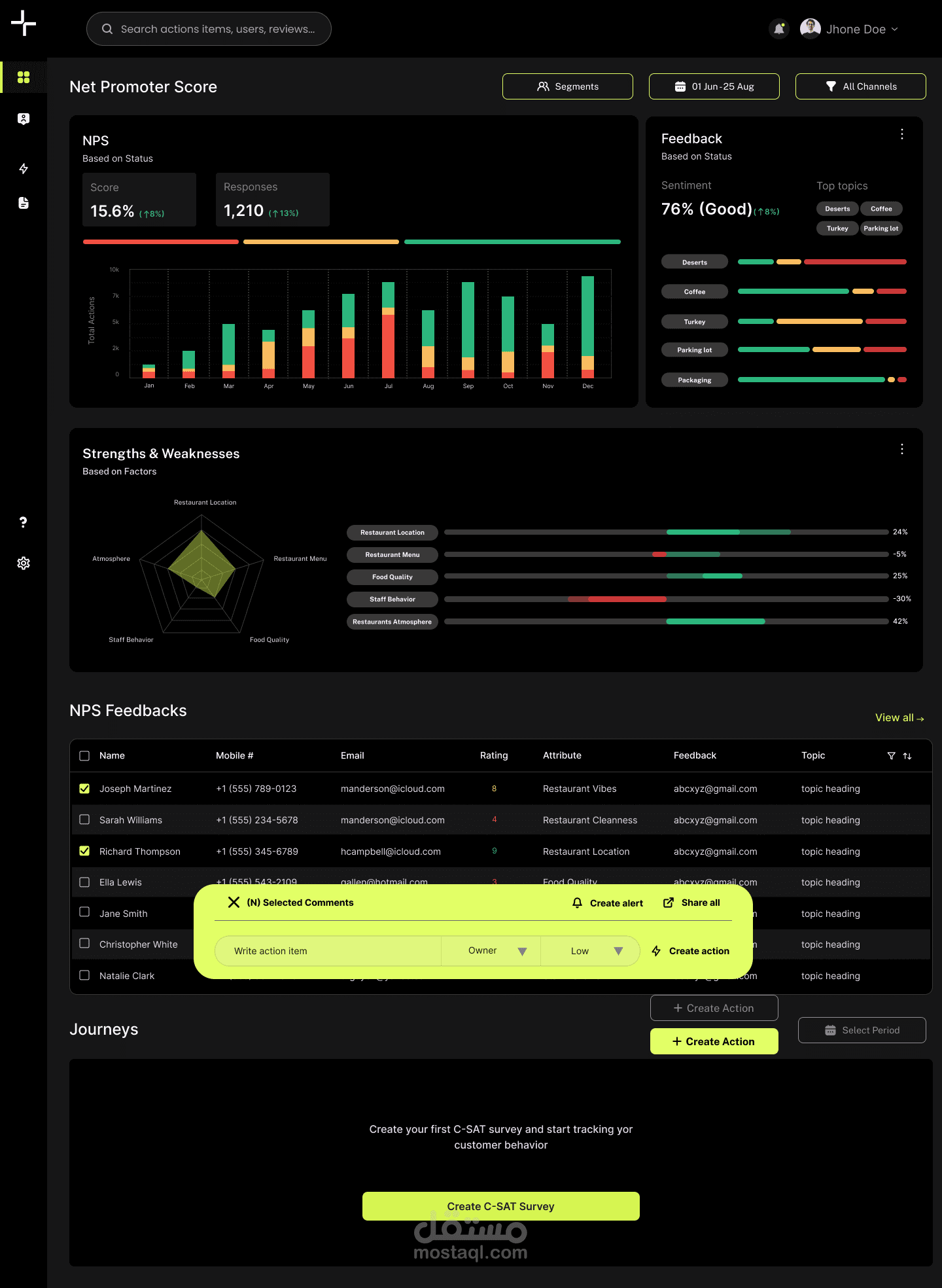 وظيفتها حساب اعداد المستخدمين والتقييمات التي تخصهم لمطعم او شركة معينة وتحديد نسبة الرضا لديهم وحساب NPS وانشاء استطلاع رأي خاص لكل مشكلة ورسم مخططات بيانية لتحديد نسب عديدة وتمكن من التعليق وانشاء بروفايل ضمن اللوحة