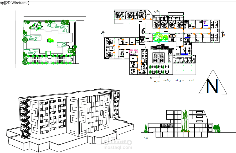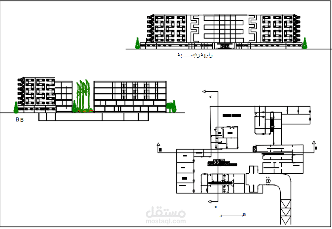 مستشفى مركزي ضخم بتضمن ثلاث طوابق قسم عيادات قسم اداري قسم إسعاف في الطابق الأرضي وقسم توليد في الطابق الثاني وقسم عمليات في الطابق الثالث ويوجد قبو للخدمات ومصفات السيارات مع مقاطع وواجهات تعبر عن العمل مع لقطات ثري دي للمبنى