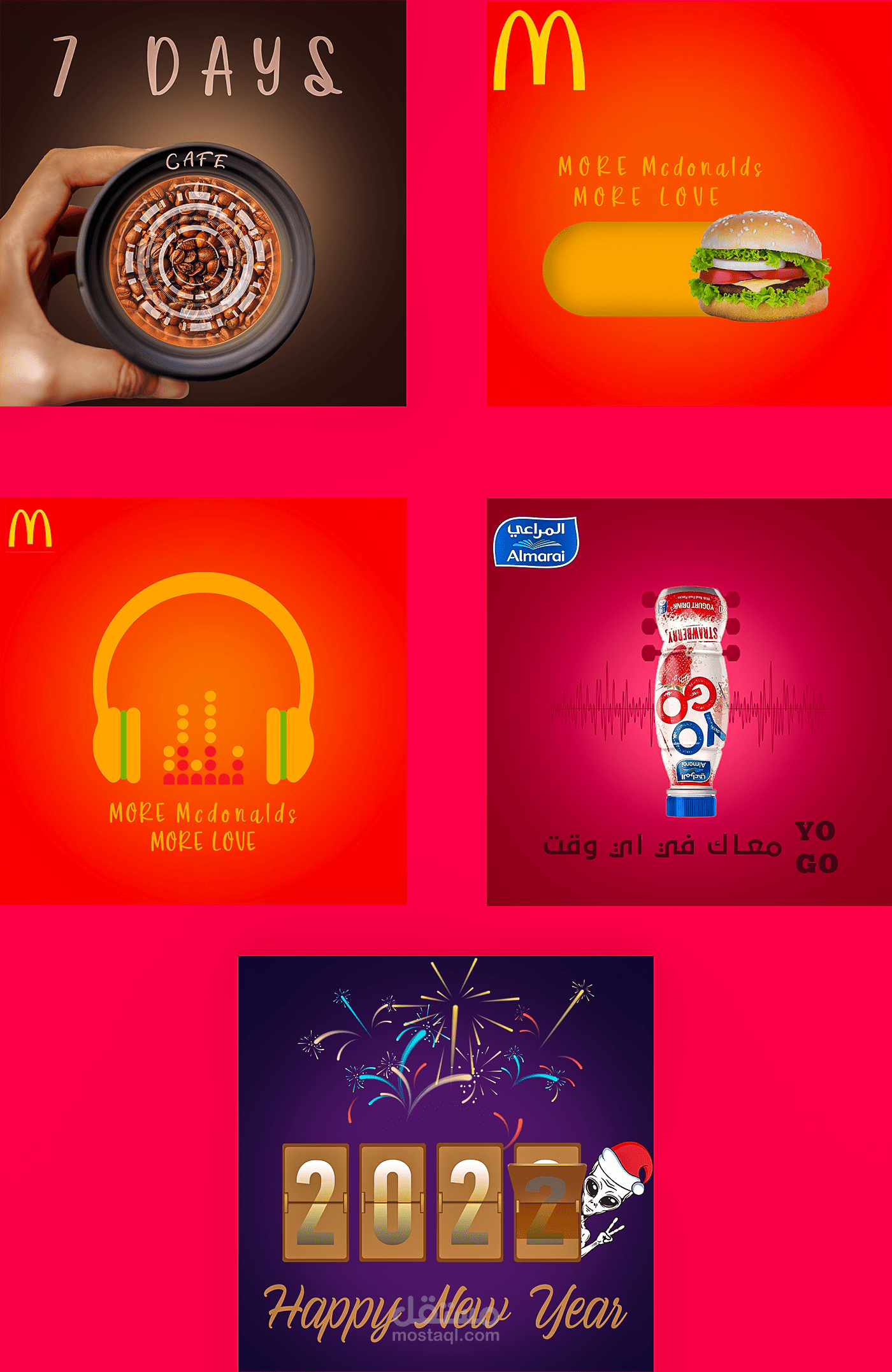 كانت هذه المجموعة لتجربتي في تصميمات السوشيال ميديا تم تنفيذ عدة افكار تجريبية بهذه المجموعة