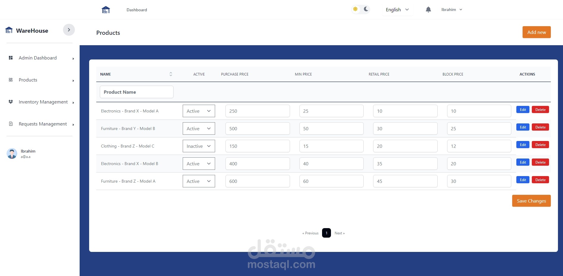 إنشاء نظام شامل لإدارة اضافة المنتجات والإرجاعات مع خيارات للتخزين واسترجاع البضائع.
