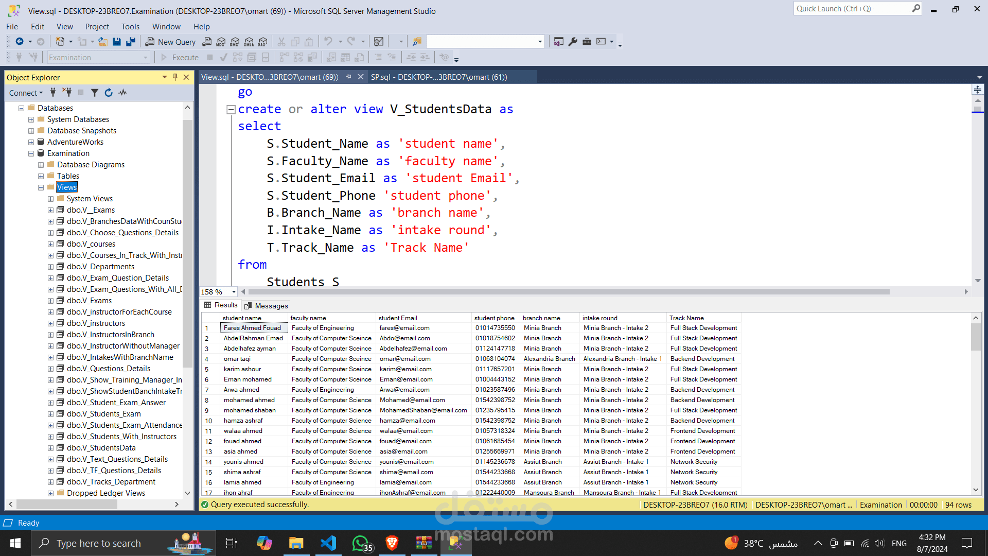 نظام قاعدة بيانات الامتحانات (Examination Database System) هو نظام متكامل لإدارة وتخزين البيانات المتعلقة بالامتحانات في مؤسسة تعليمية. يستخدم هذا النظام خادم SQL (مثل SQL Server) لتخزين وتنظيم البيانات بطريقة آمنة وفعالة. إليك وصفًا شاملاً للمشروع.