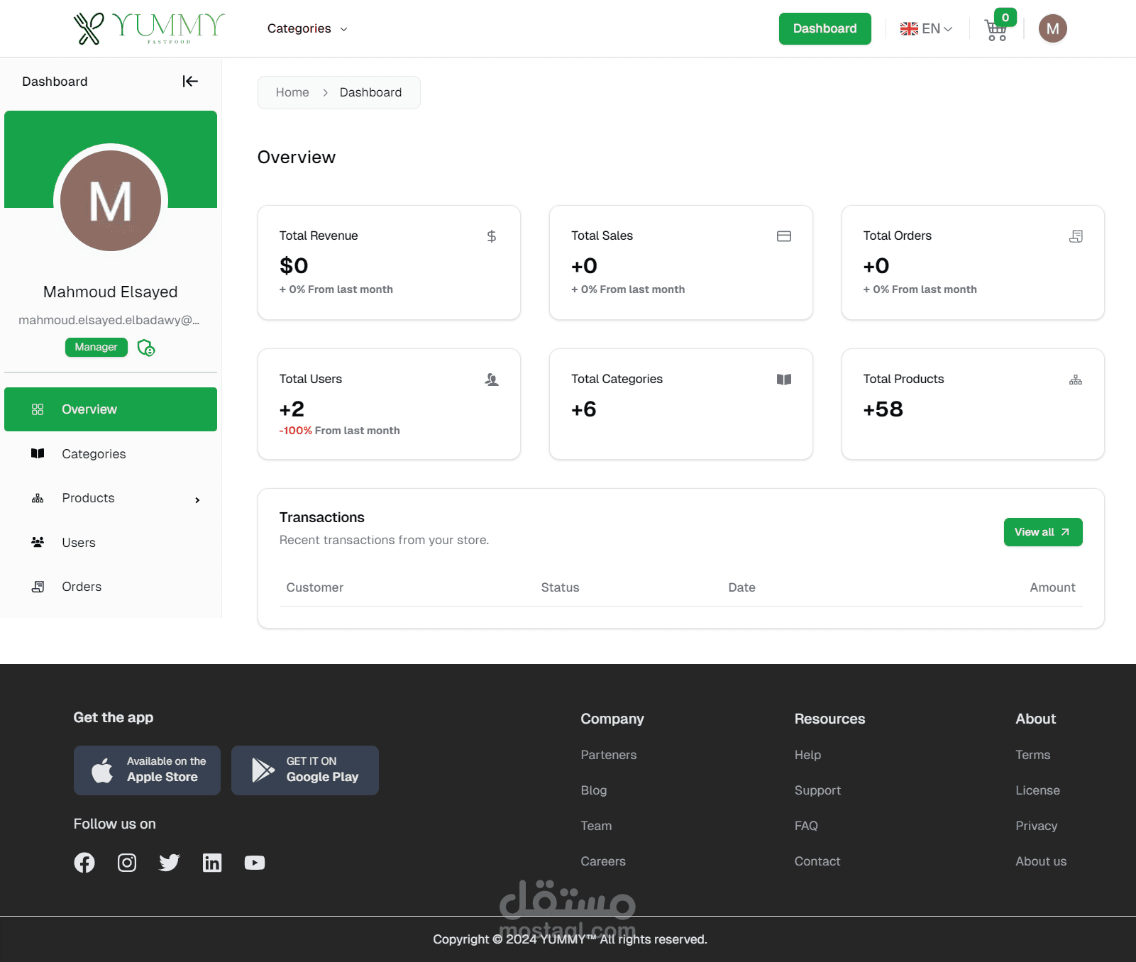 - Admin dashboard: An administrative interface where admins can manage users, orders, categories, and products.