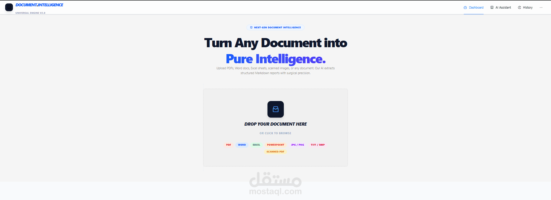 I designed and developed Document.Intelligence, a next-generation AI-powered document intelligence platform that transforms any uploaded document (PDFs, Word, Excel, PowerPoint, scanned images, or photos) into structured, clean Markdown reports with surgical precision.