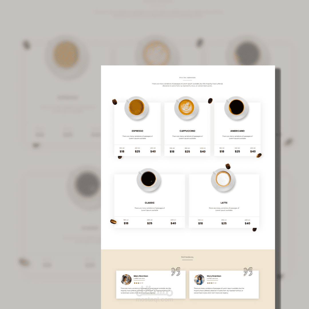 تصميم موقع لمقهى ، مع عرض القائمة، وخيارات الحجز، وتواصل سريع مع العملاء