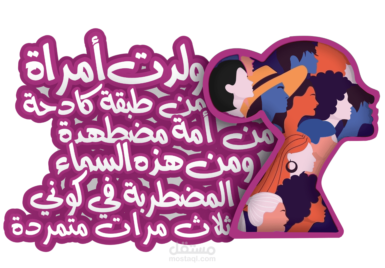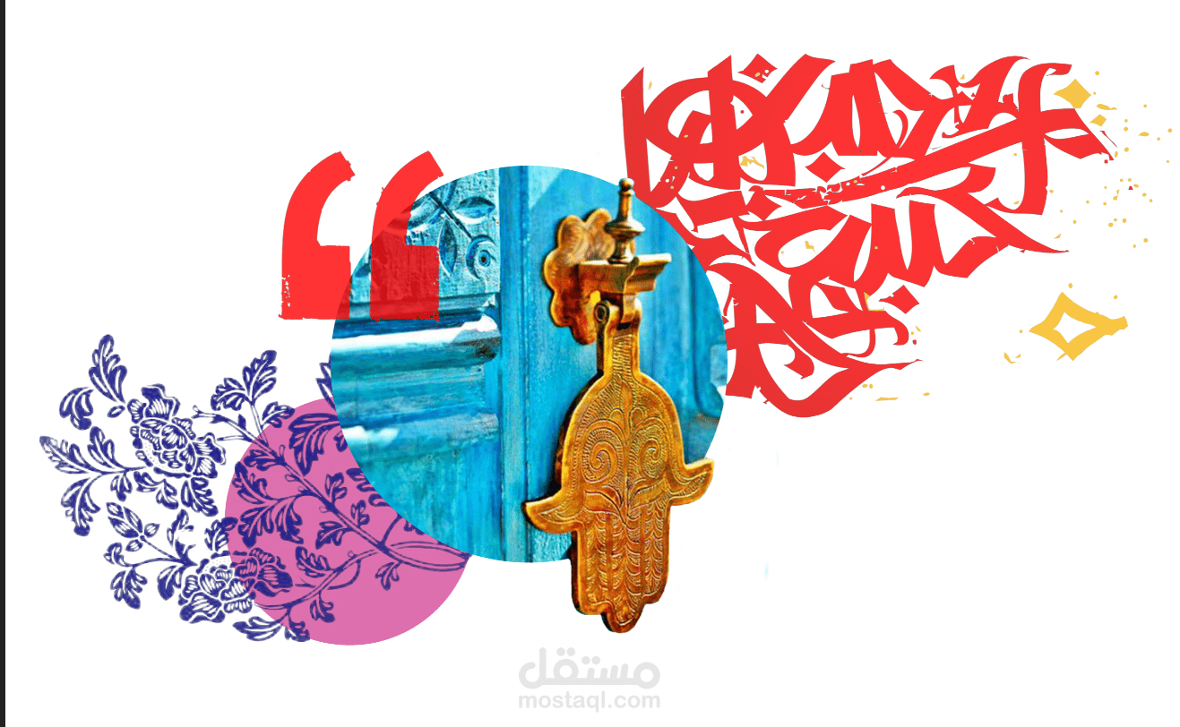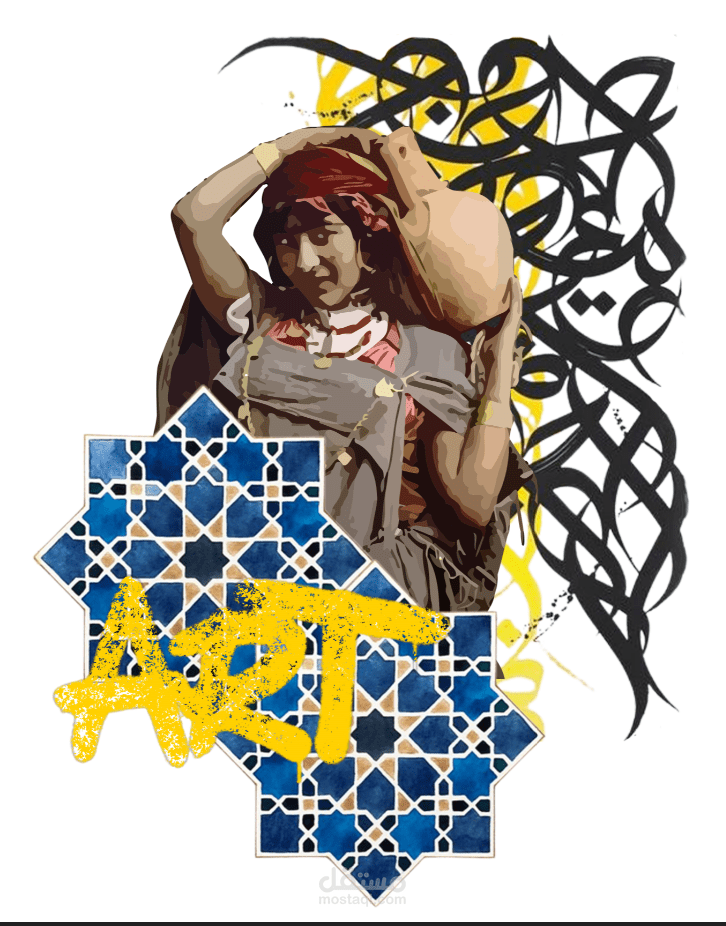 Project description. I created artistic graphic compositions blending calligraphy, Arabic culture, graffiti, and traditional symbols for diverse projects. These designs were used for street decorations, aesthetic clinics, and feminist national clubs. Each composition was tailored to enhance visual appeal and convey strong messages, utilizing Adobe Photoshop and Illustrator.