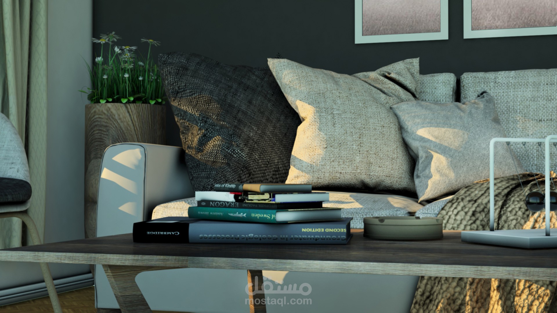 تصميم داخلي لغرفة معيشة (لقطة نهارية )
