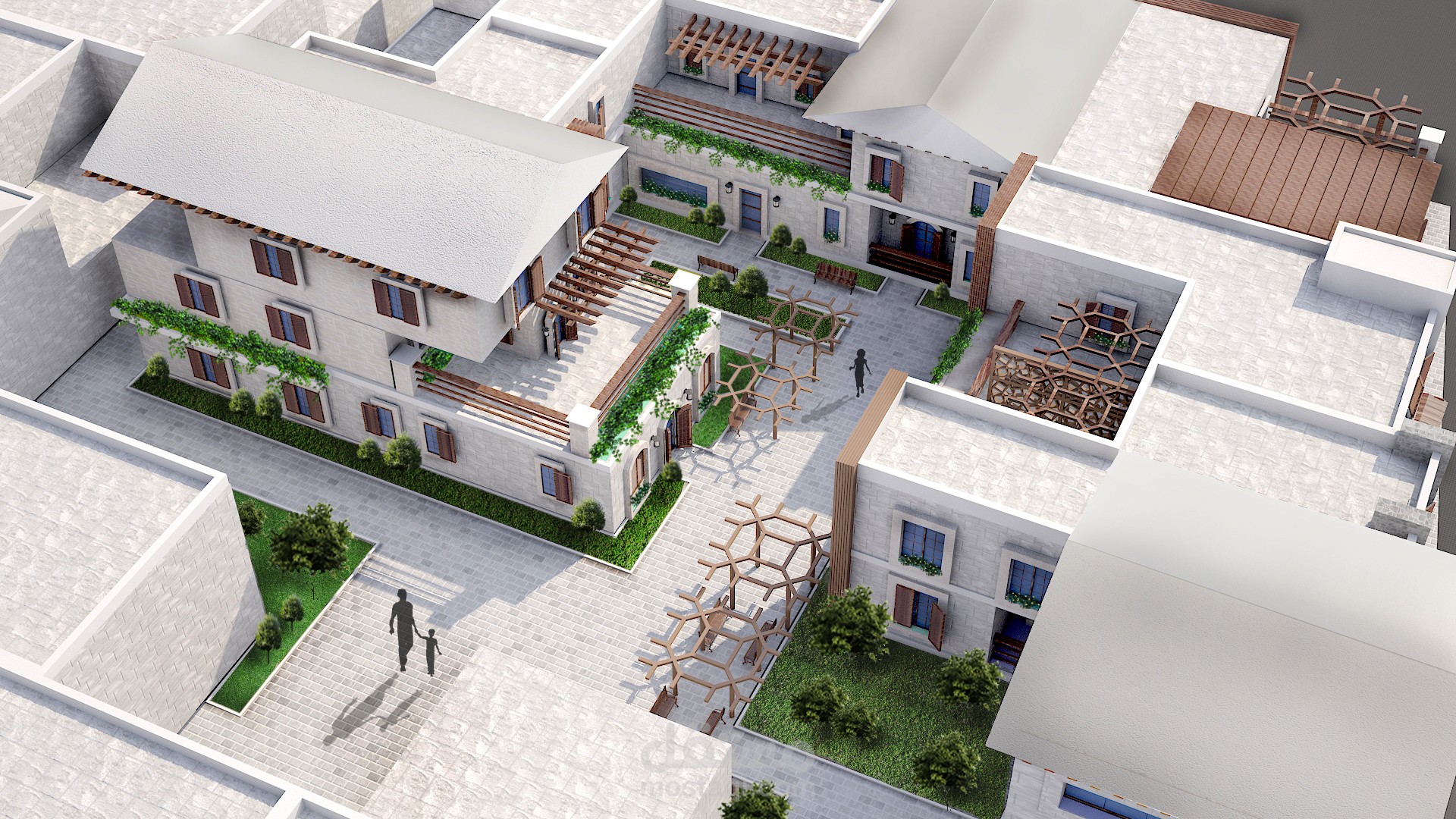 اعادة اعمار مركز الزبداني : في إطار تنموي لاجتياز الحالة التي تشهدها الزبداني تمت دراسة بعض المحاور وفق معايير تخطيطية مناسبة لطبيعة المنطقة وروح البلدة القديمة لتلبية احتياجات
