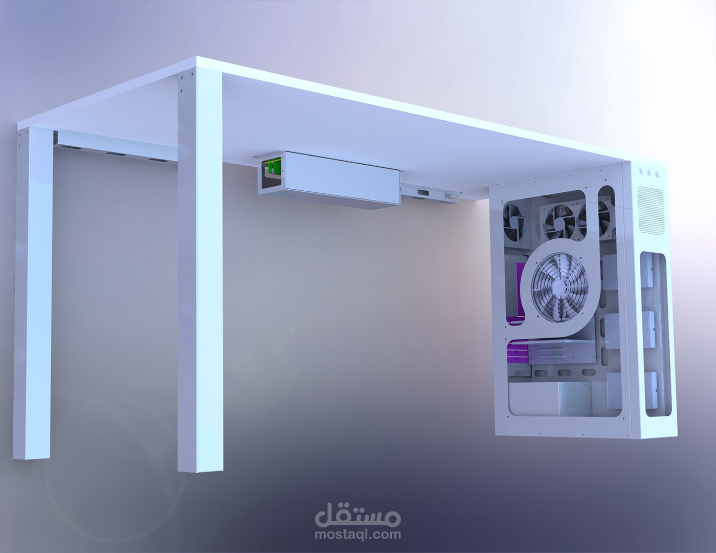 This innovative project involves the design of a sleek and functional PC case embedded directly into the leg of a desk, constructed from durable 2mm sheet metal. The design integrates seamlessly with the desk, providing a modern and space-saving solution for PC enthusiasts and professionals alike. The embedded PC case includes built-in USB hubs and power plugs, ensuring easy access and connectivity.