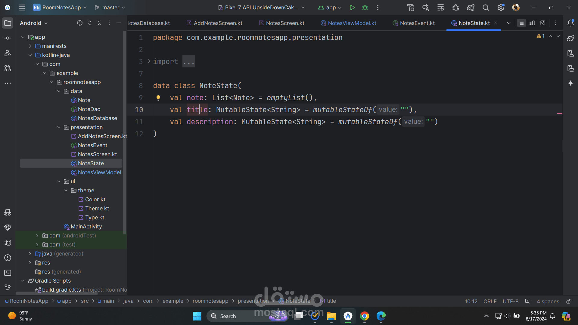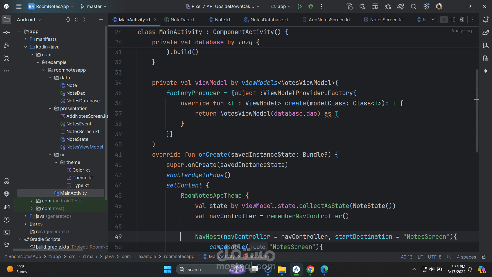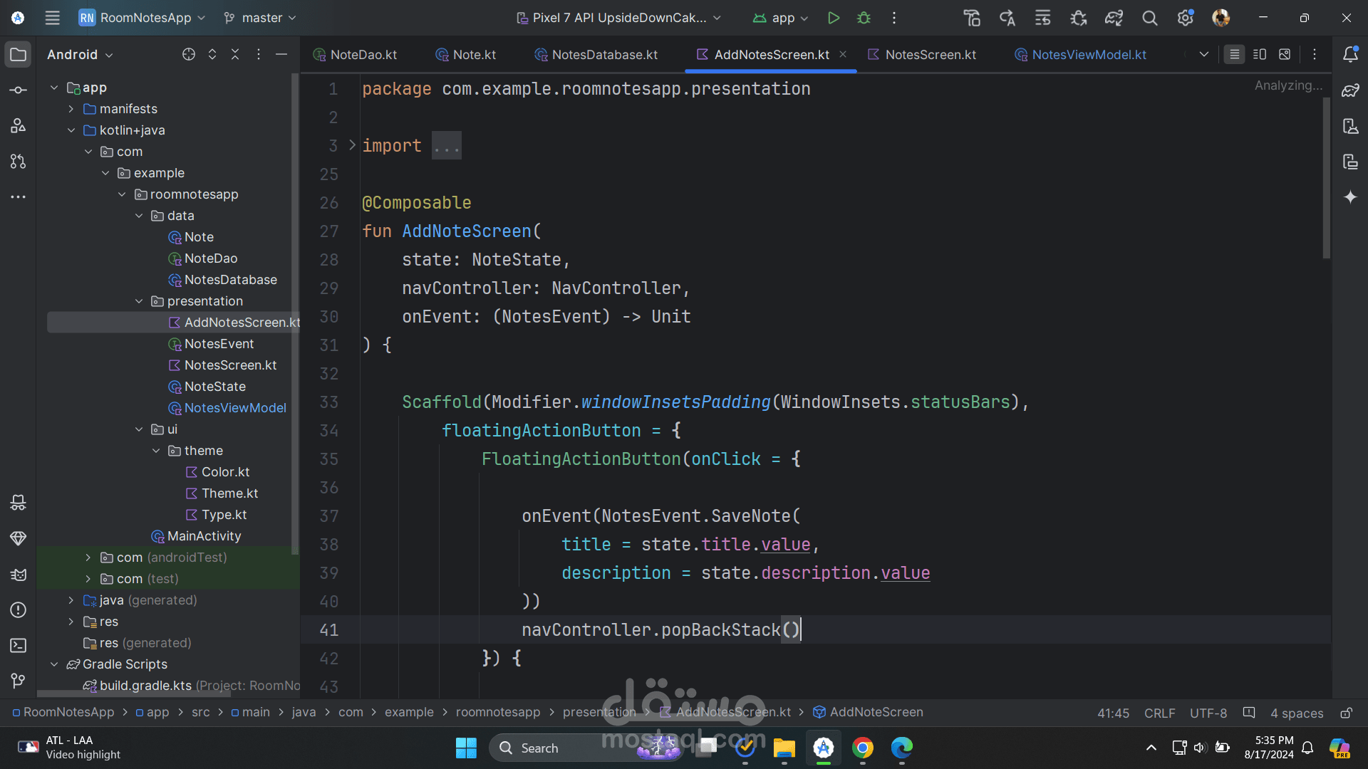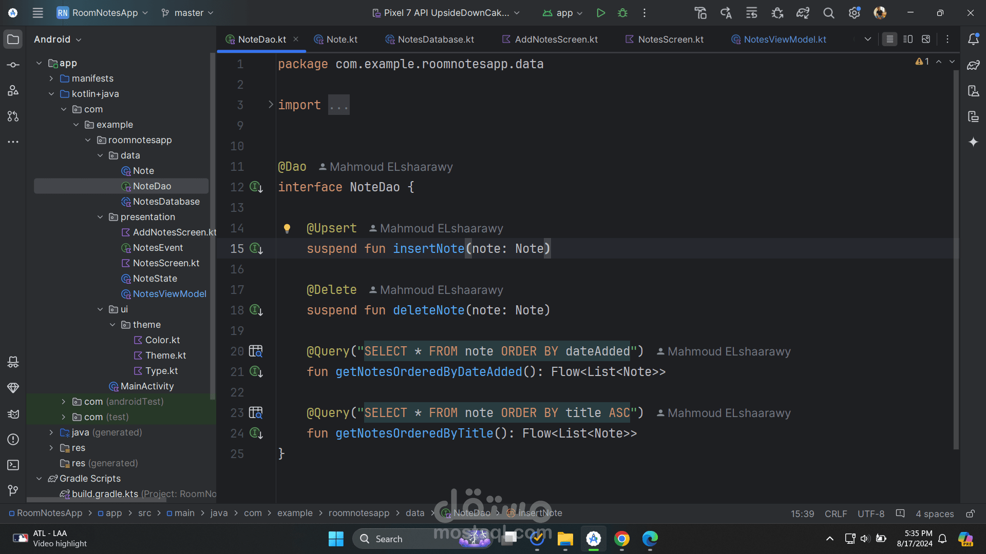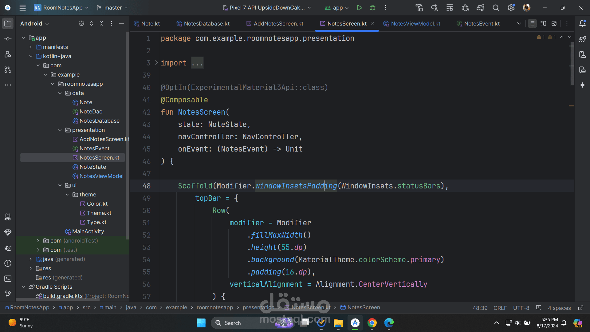 third: I created the room database and connected it to the application with the viewmodel and repositories , forth: I started to implement the UI with compose and handling state in the viewmodel