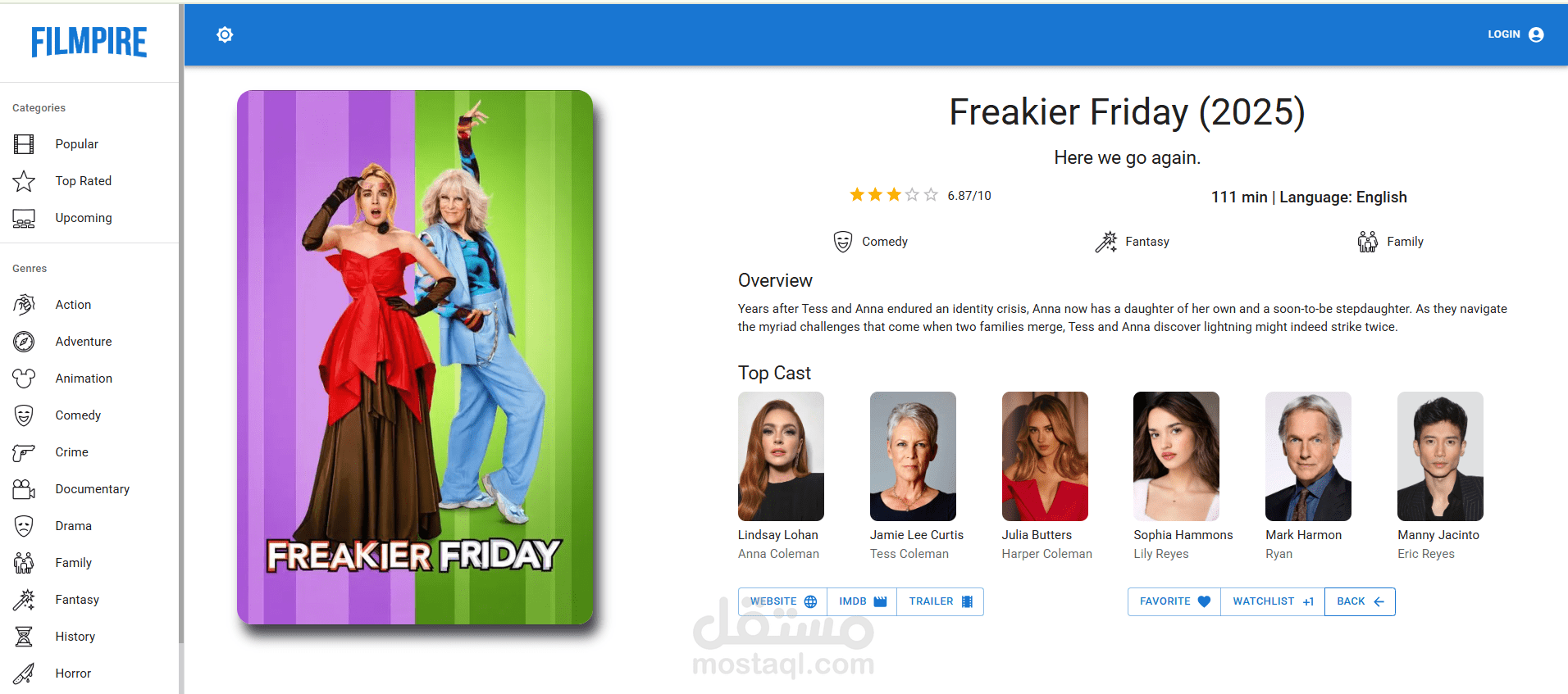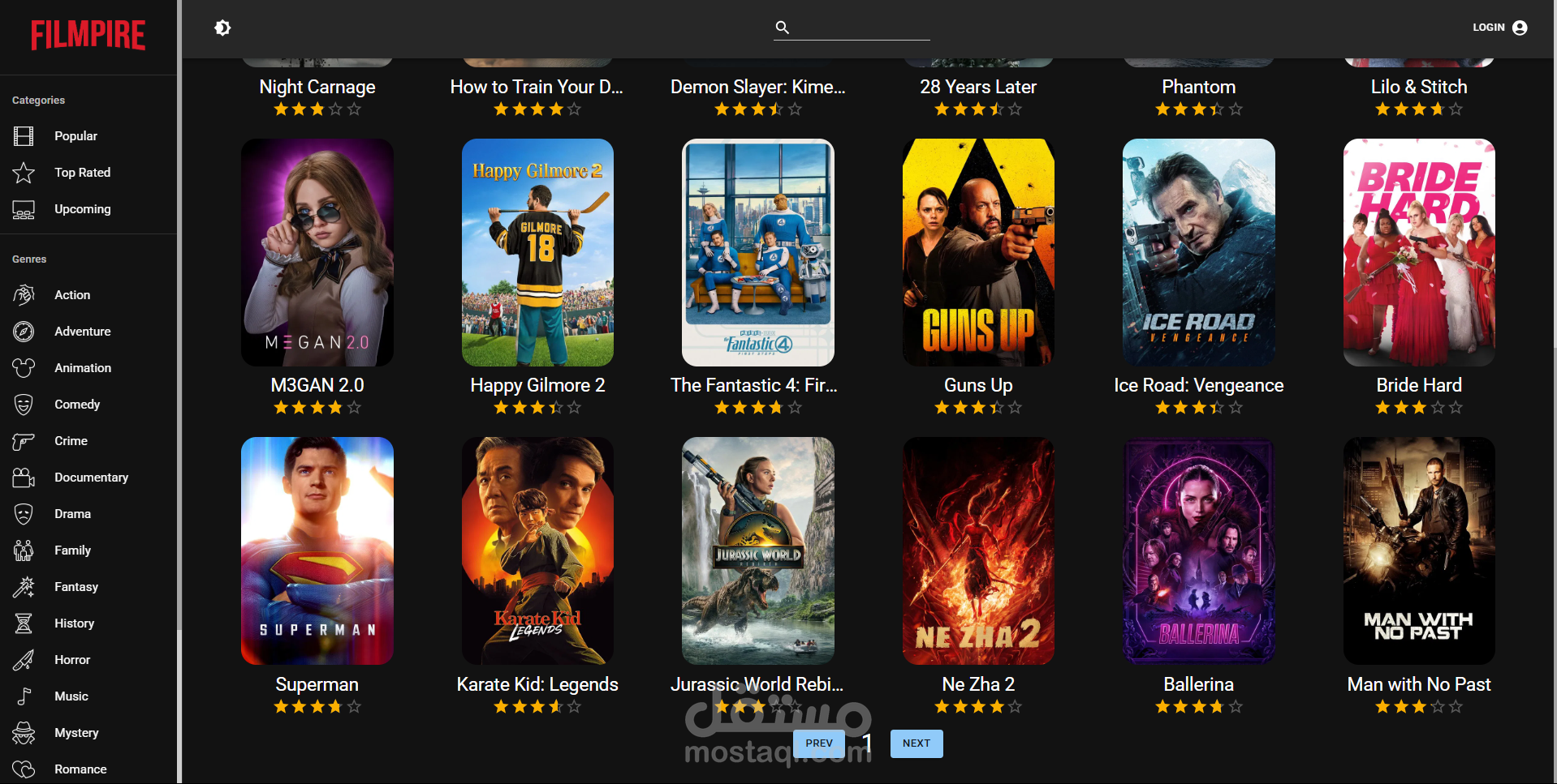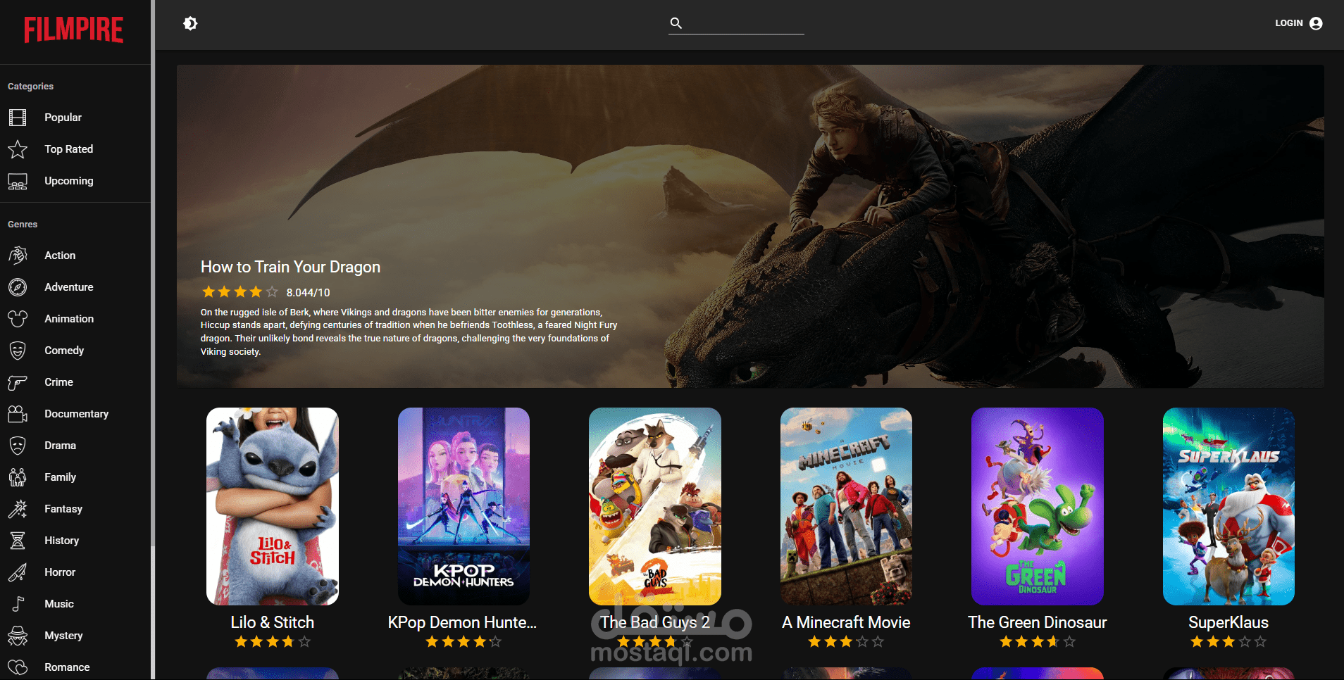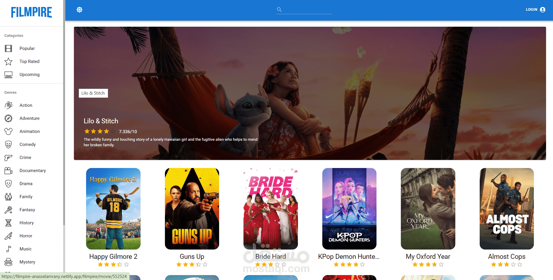 في هذا المشروع، قمت بتطوير تطبيق ويب يُحاكي منصة Netflix، أطلقت عليه اسم Filmpire. تم بناء التطبيق باستخدام React.js من أجل إنشاء واجهة تفاعلية وسريعة الاستجابة، بالإضافة إلى استخدام مكتبة Material UI لتصميم واجهة مستخدم أنيقة وعصرية.