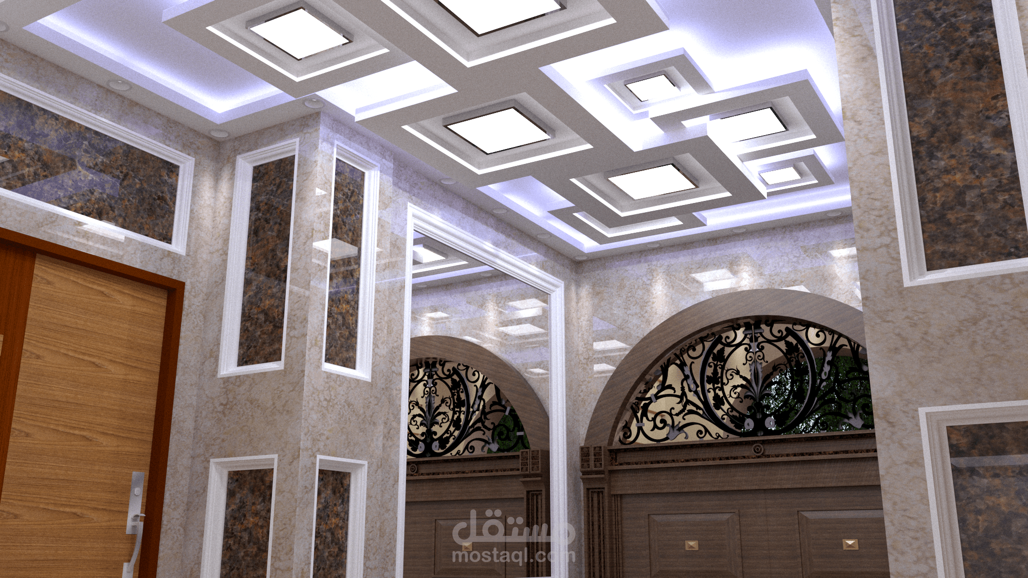 مدخل لفلا سكنية في( مصر -القاهرة الجديدة )علي الطراز ال(Postmodern ) تم تنفيز المشروع ببرنامج (sketchup)
