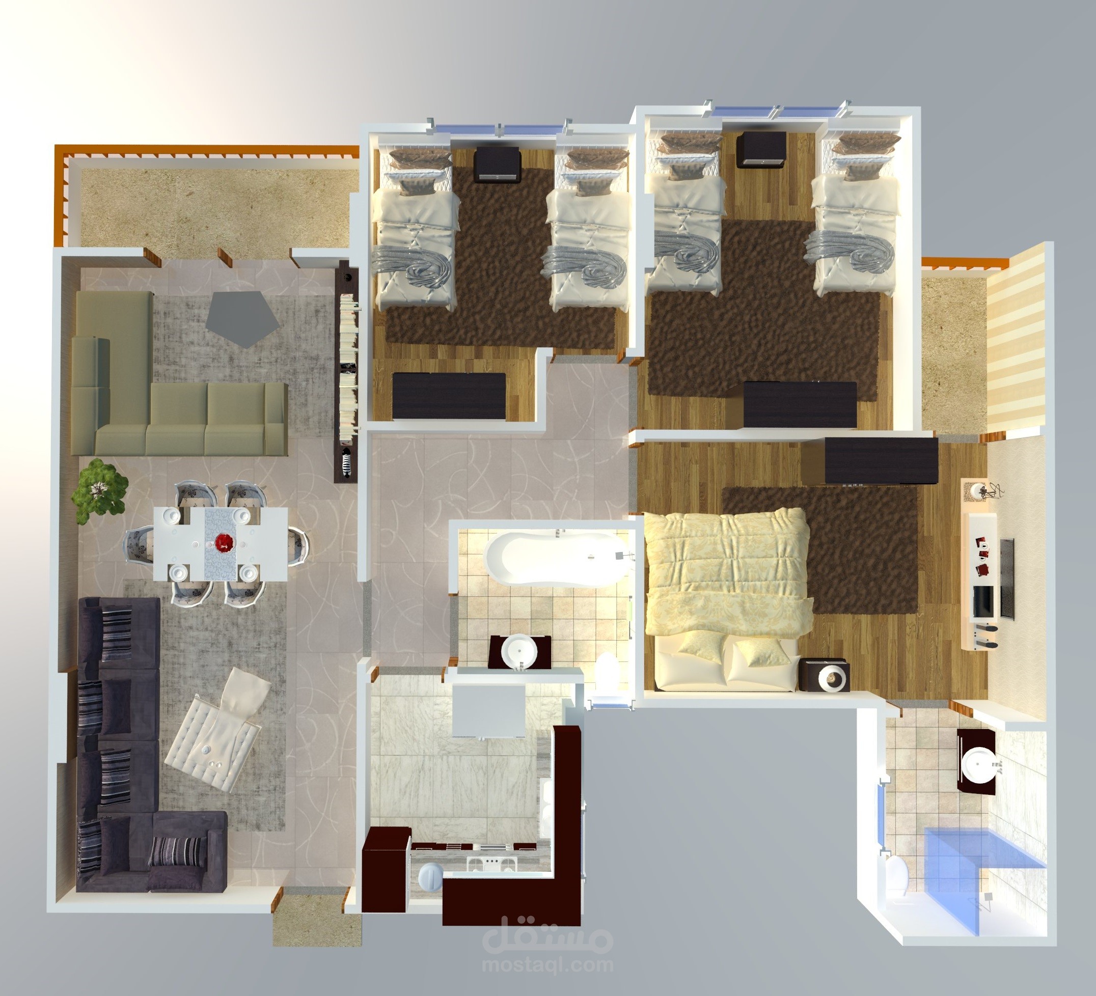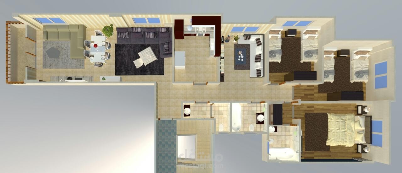 تصميم مجسم ثلاثي الابعاد لمخطط تقسيم شقق سكنية