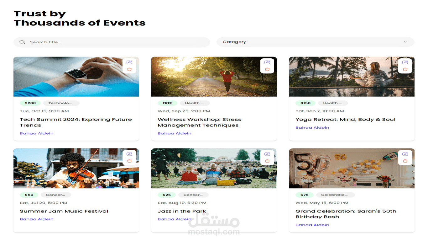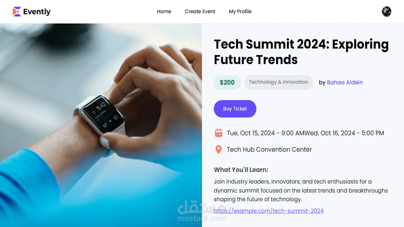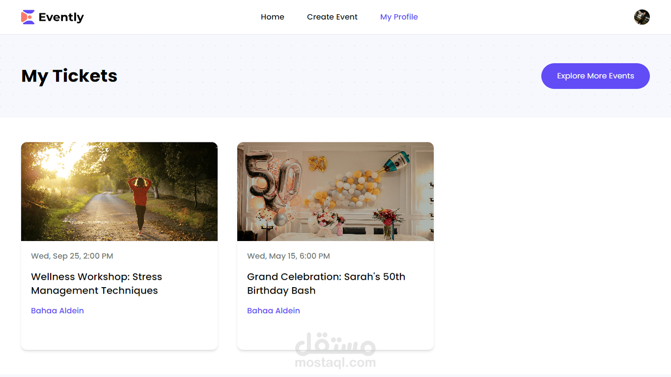 أنشأت واجهة مستخدم سهلة الاستعمال ومتجاوبة باستخدام Tailwind CSS، مما سهل عمليات إدارة الفعاليات وشراء التذاكر.