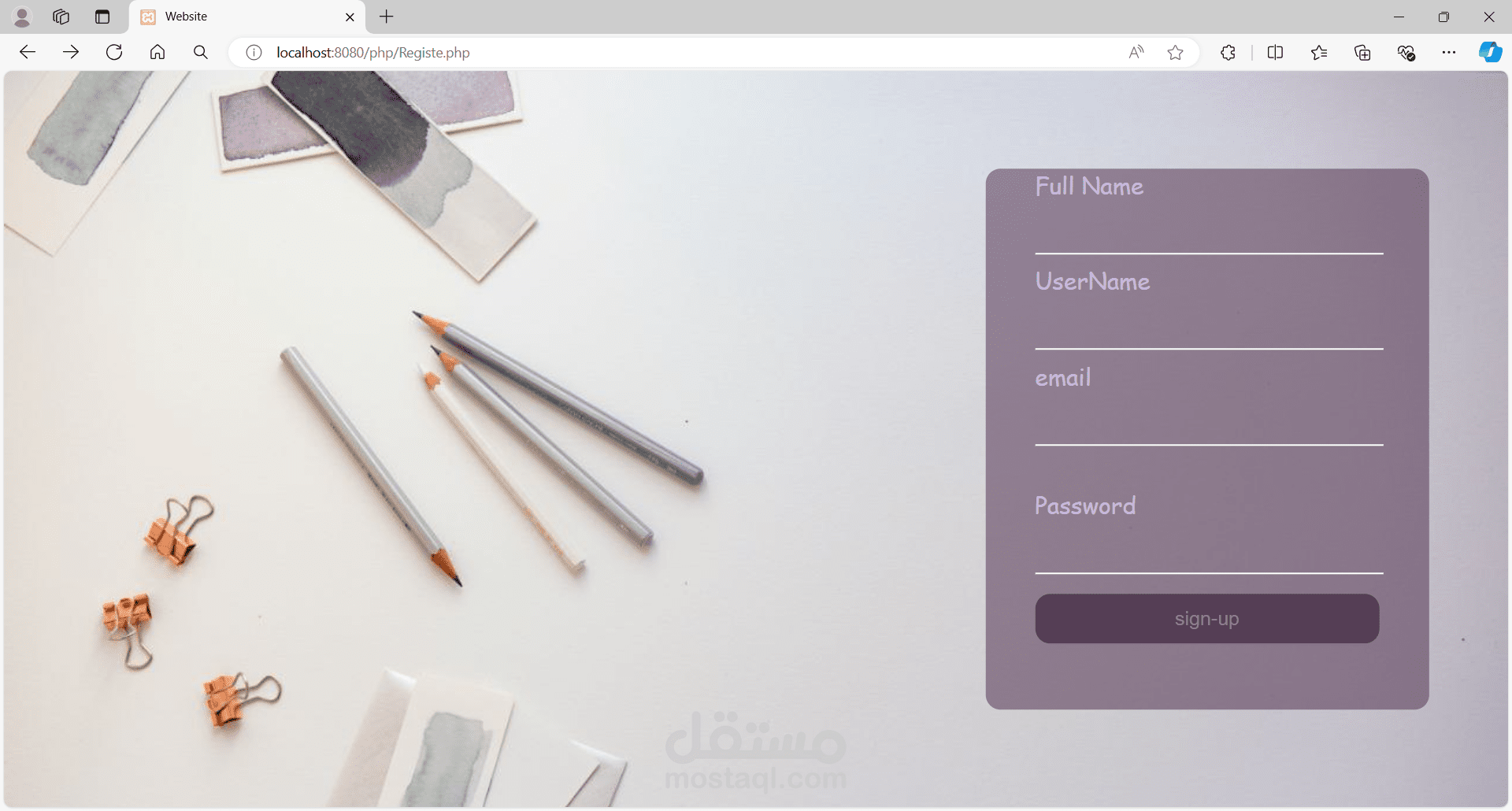 1- طلب من المستخدم ملء بياناته (الاسم -كلمة المرور- البريد الالكتروني)