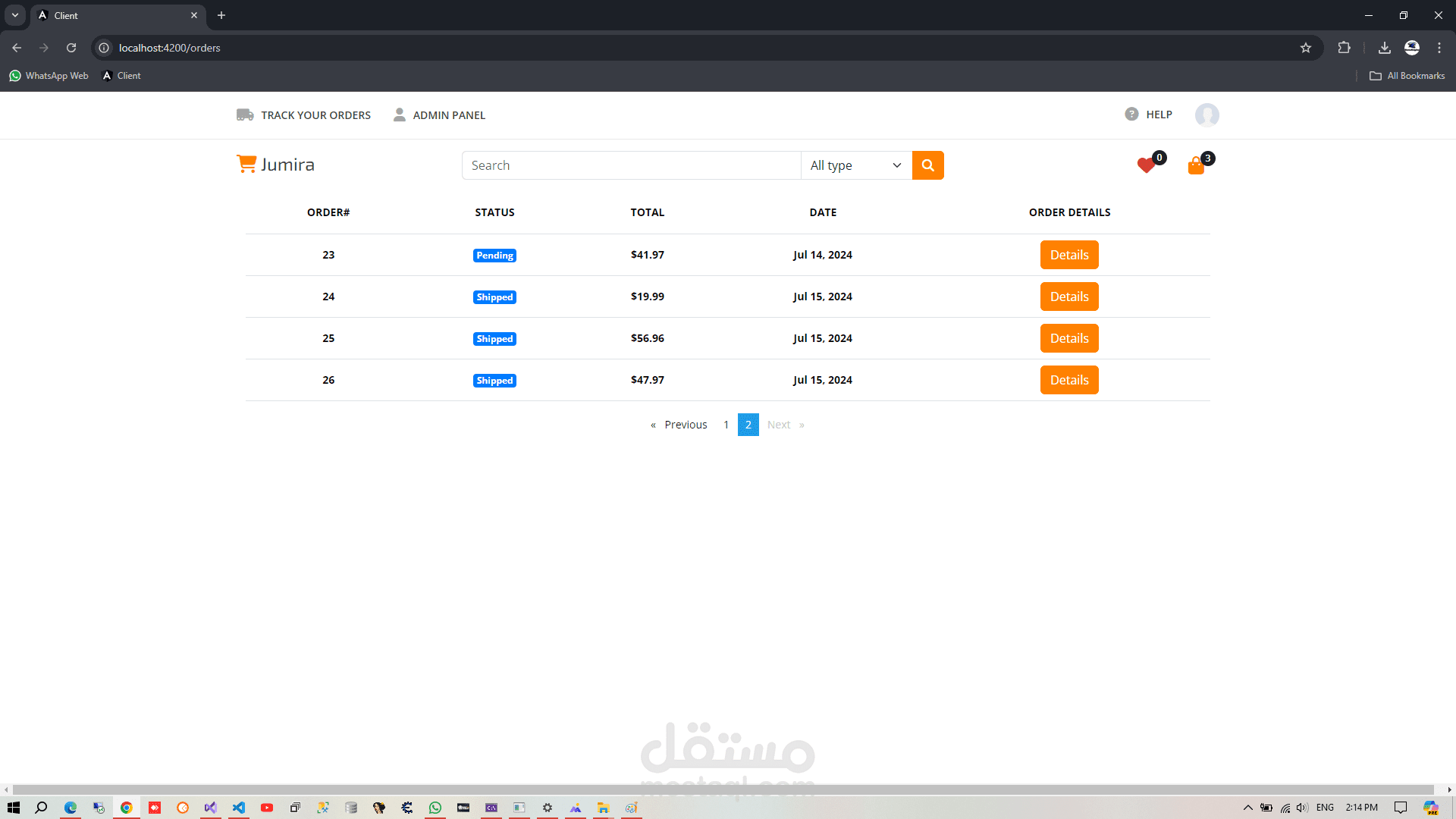 يتكون المشروع من واجهة أمامية مبنية باستخدام Angular وواجهة خلفية مبنية باستخدام ASP .NET Core Web API