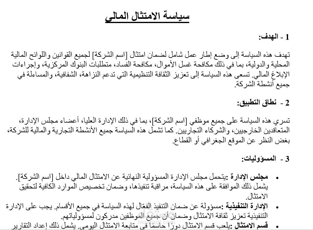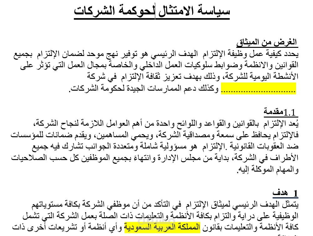 1 - سياسة الامتثال لحوكمة الشركات.