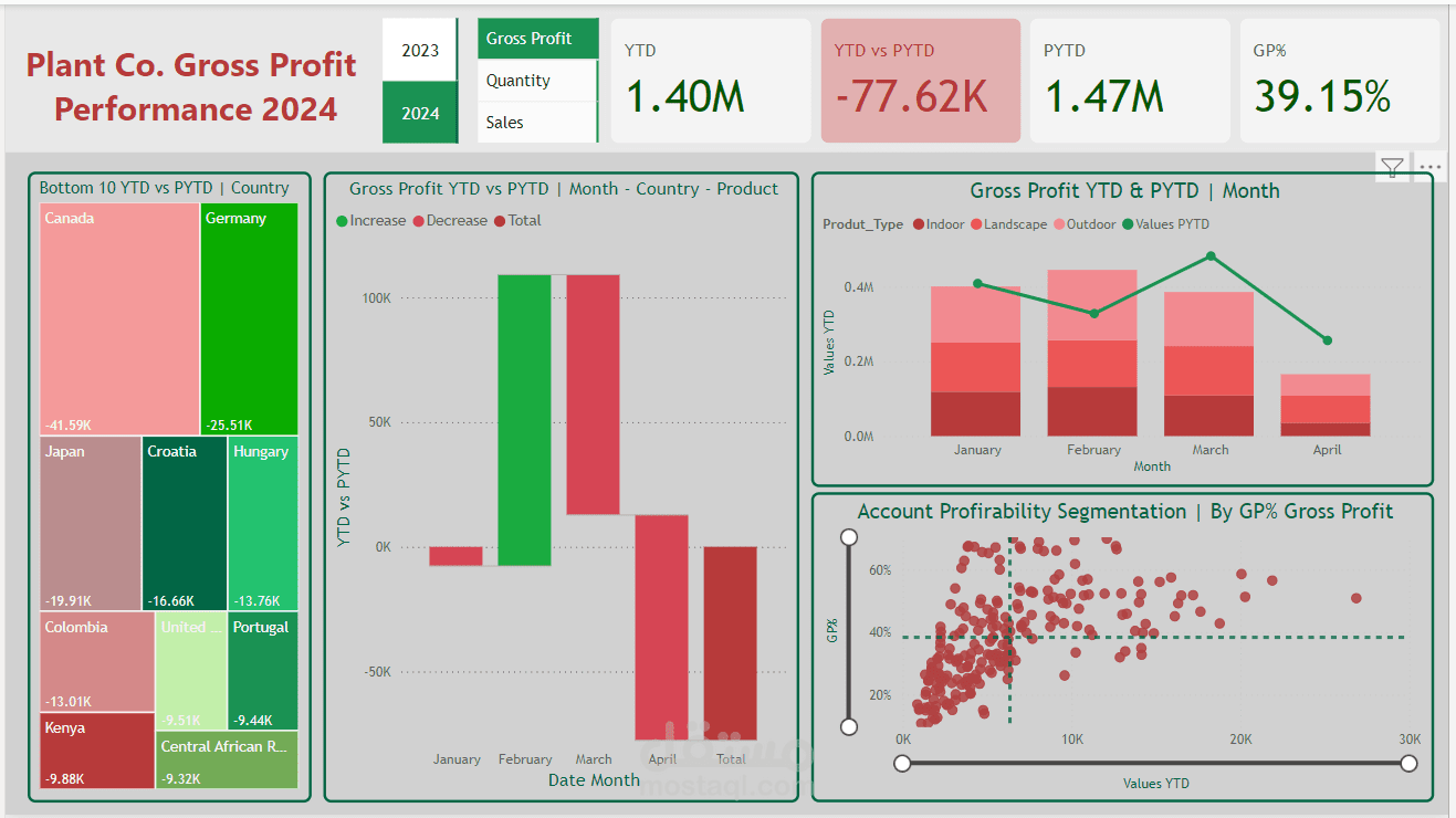 This project highlights my expertise in leveraging Power BI to deliver detailed and actionable insights into plant sales performance. The dashboard provides a comprehensive view of sales dynamics, profitability, and growth trends, empowering stakeholders to make data-driven decisions and optimize business strategies.