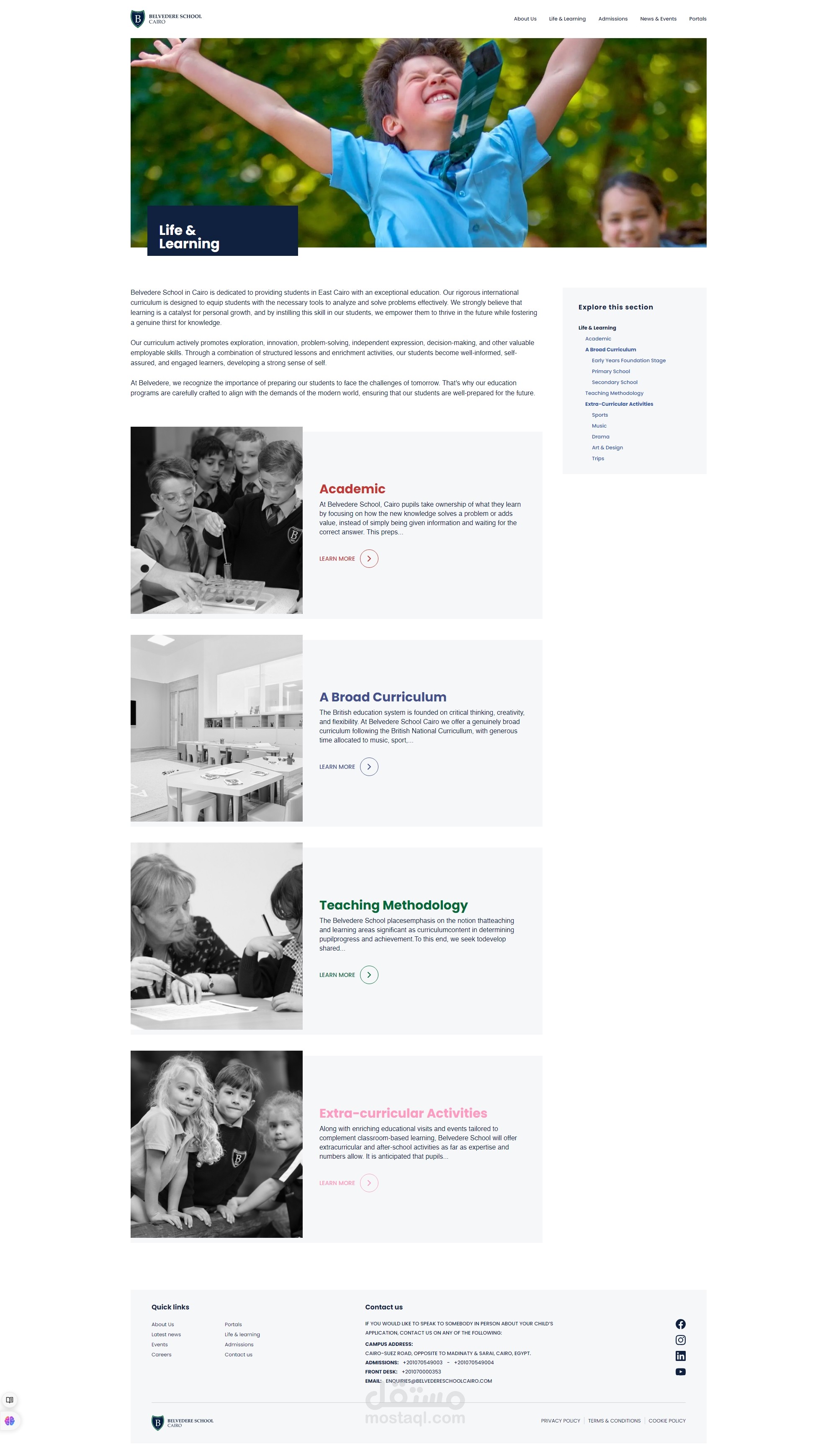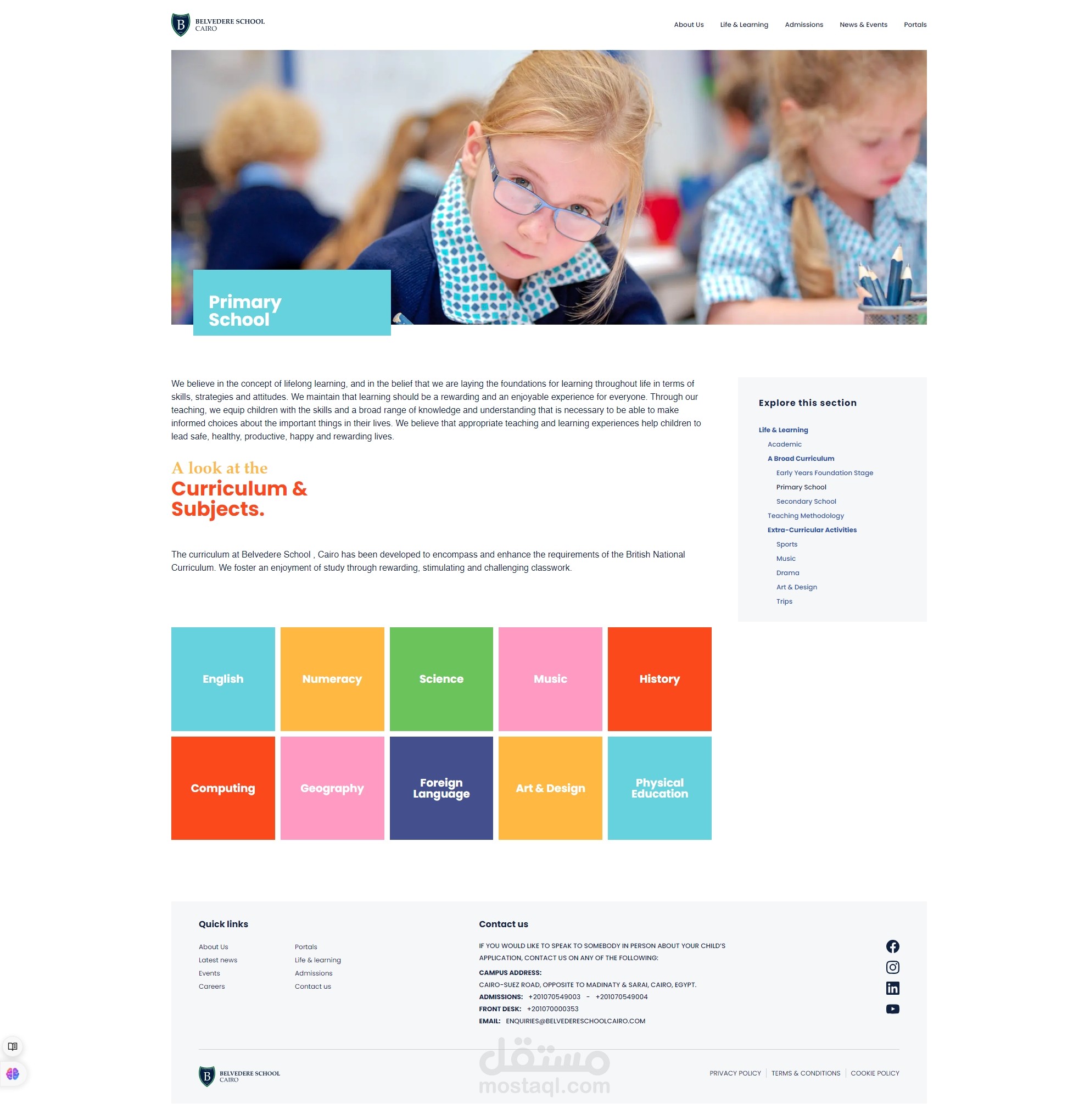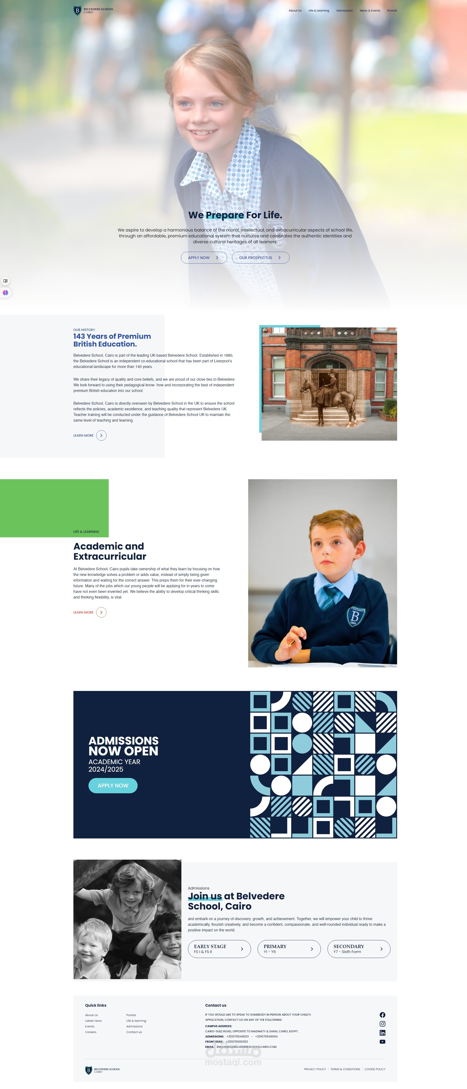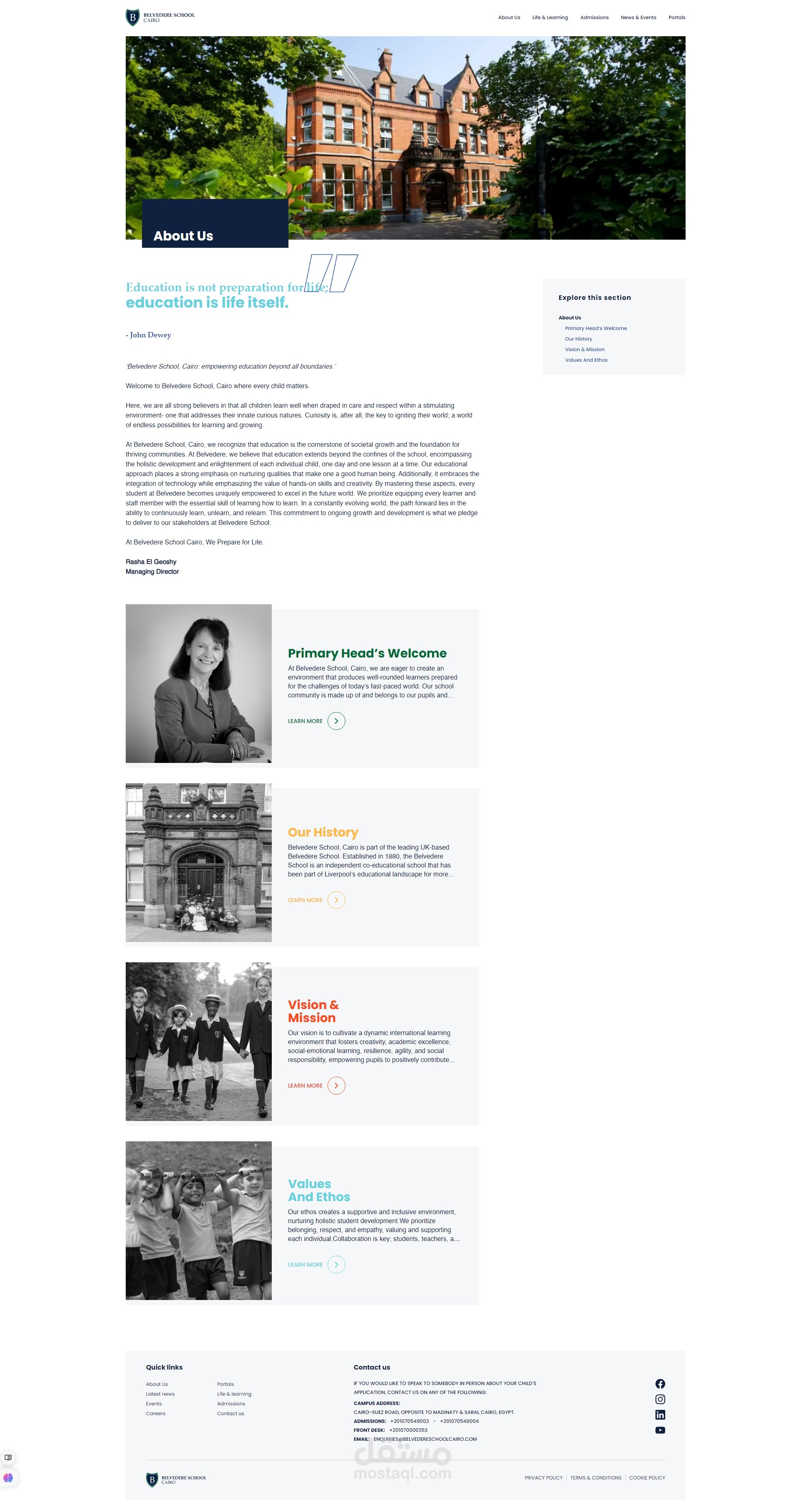 موقع خاص لمدرسه Belvedere باستخدام تقنية Next.Js و عمل لوحة اداره خاصة تمكن المدرسه والاداره من اضافه محتوي و التعديل عليه بكل سهوله سواء كان محتوي كتابي او media و ايضا نمازج تسمح لانضمام الطلبه الجدد, فالموقع يجمع بين سهوله الاستخدام للاداره و تنظيم عمليات اضافه الطلبه الجدد وأيضا يسهل علي الطلاب و أولياء الأمور عمليه تسجيل أبناءهم في المدرسه و متابعة مستواهم العلمي اول بأول و معرفة كل ما يخص المدرسة قبل التقديم للأبناء, وهذا هو الهدف من الحلول البرمجيه: تسهيل التعاملات و توفير الاوقات علي كل الاطراف و سهوله الاستخدام.