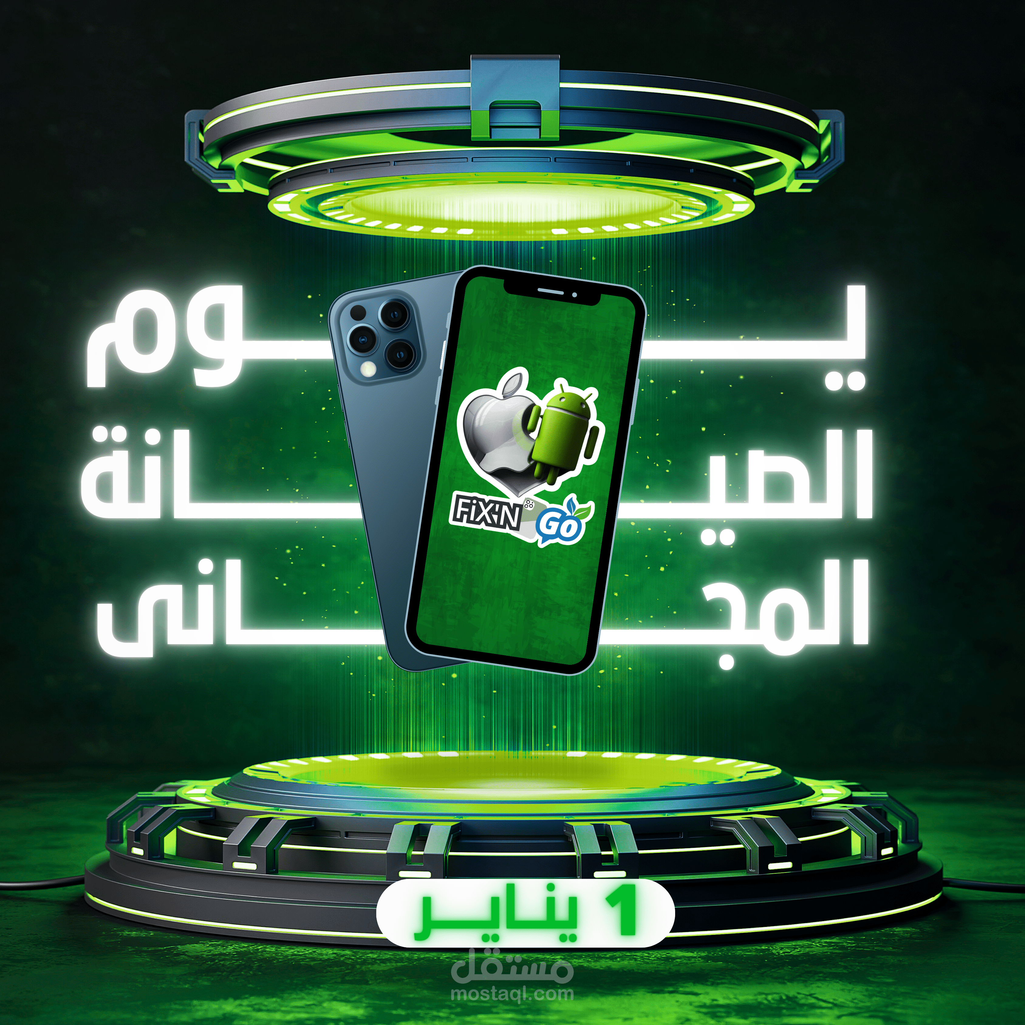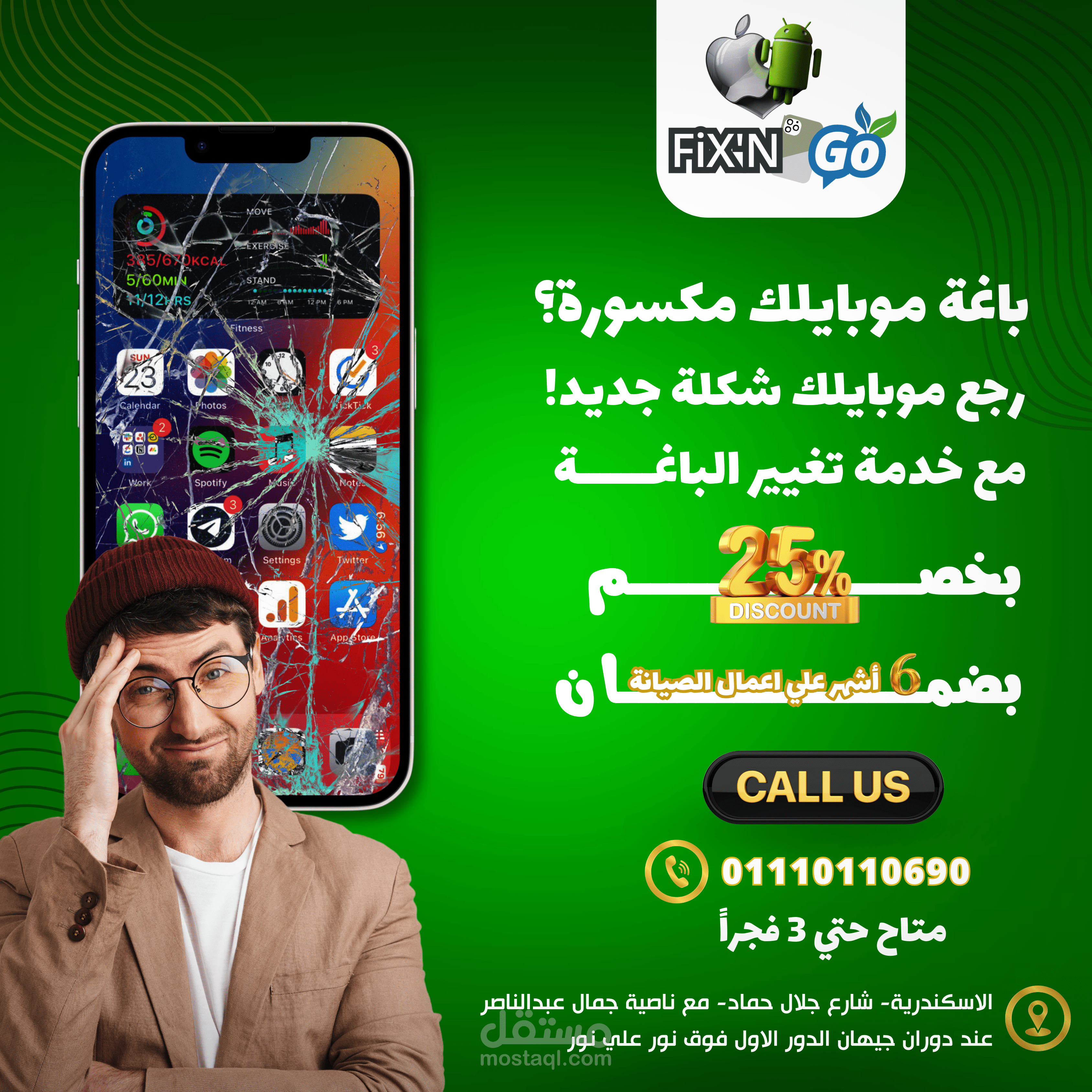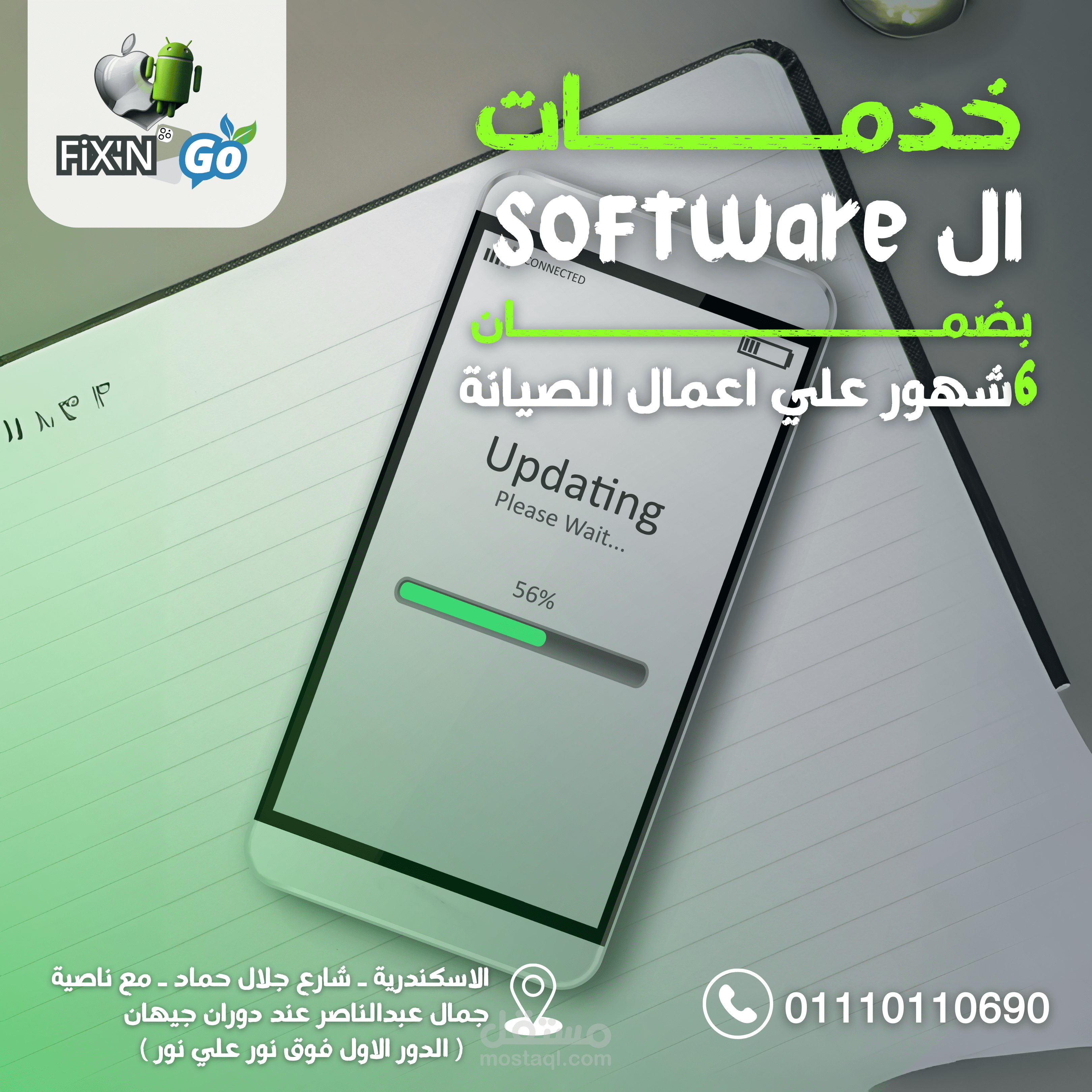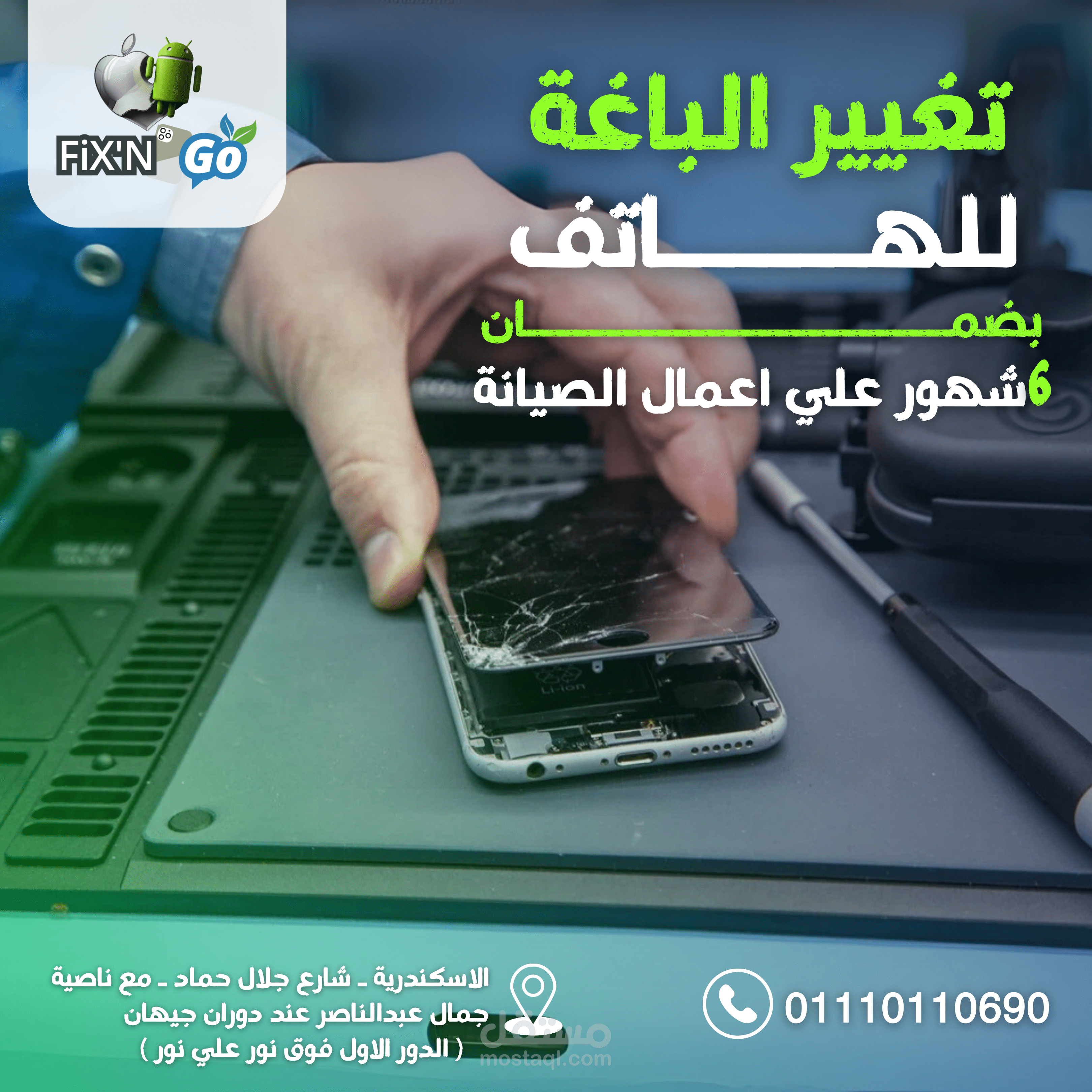 مجموعه متنوعه من تصميمات السوشيال ميديا لمركز صيانة FixN'Go