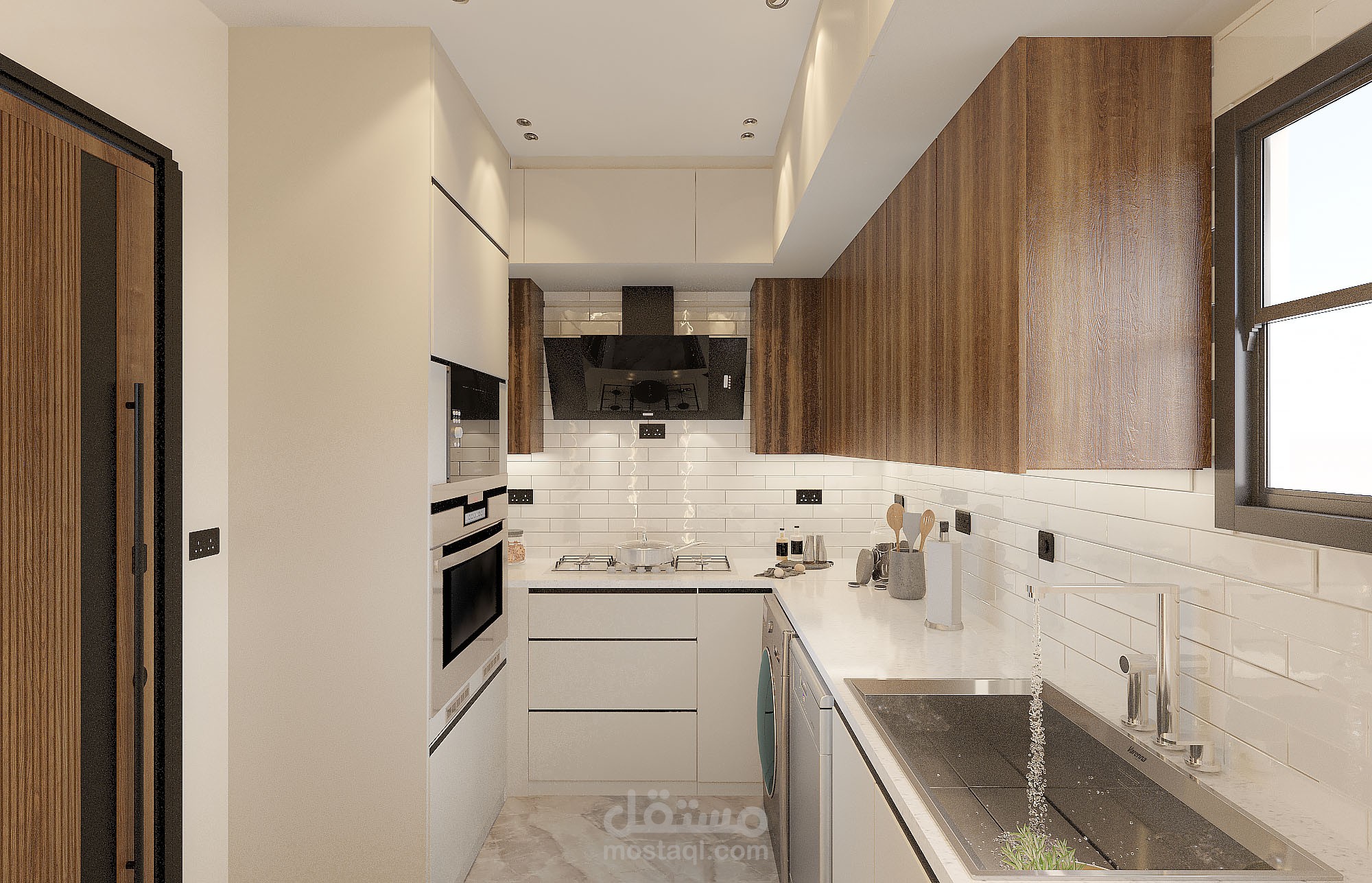 تصميم مطبخ بتقسيم الفراغ units والاجهزه الكهربائيه