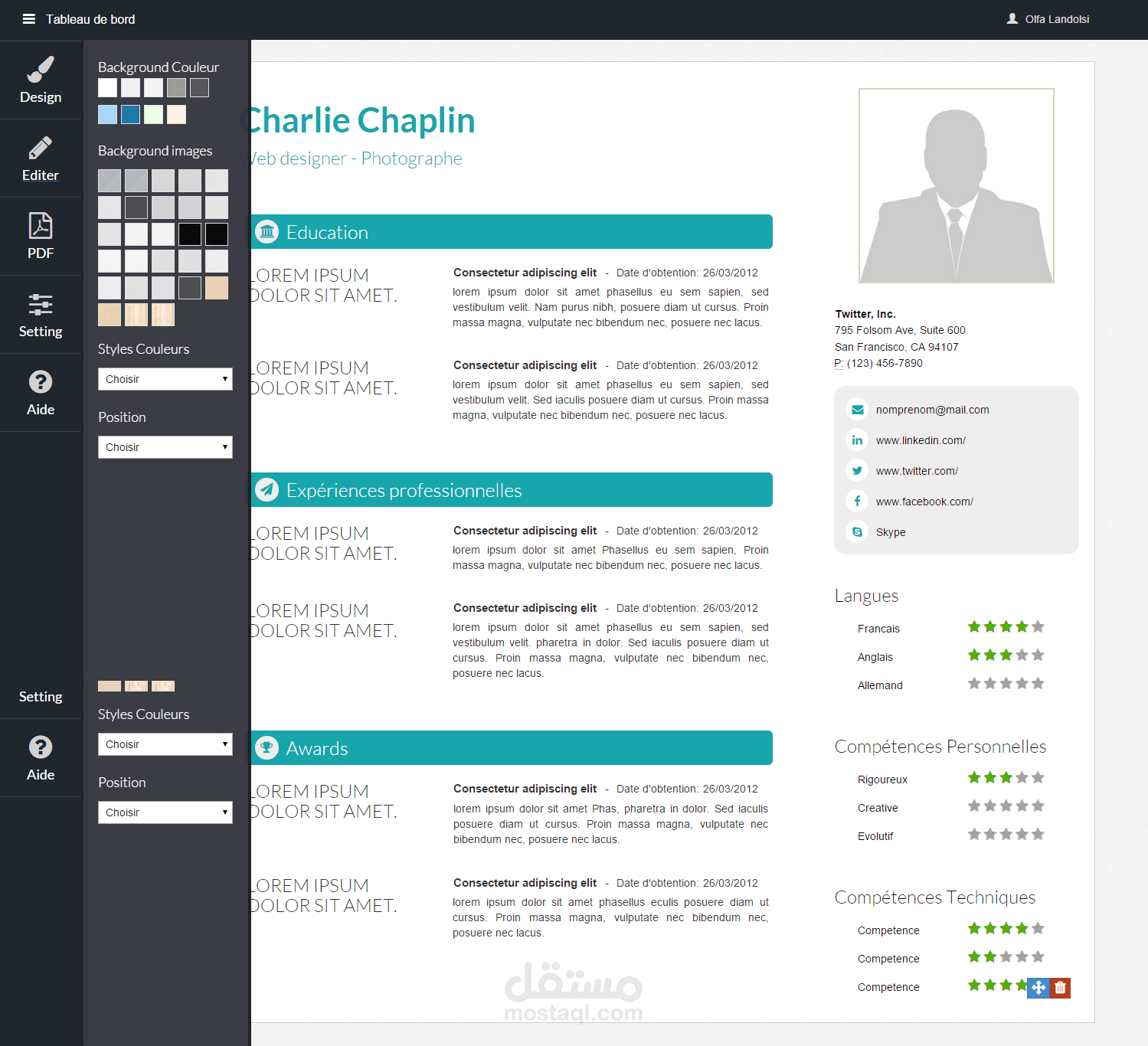It's a web application that allows you to create your own resume with the style that you choose or that you customise, it's responsive design, it works on mobile and tablet.