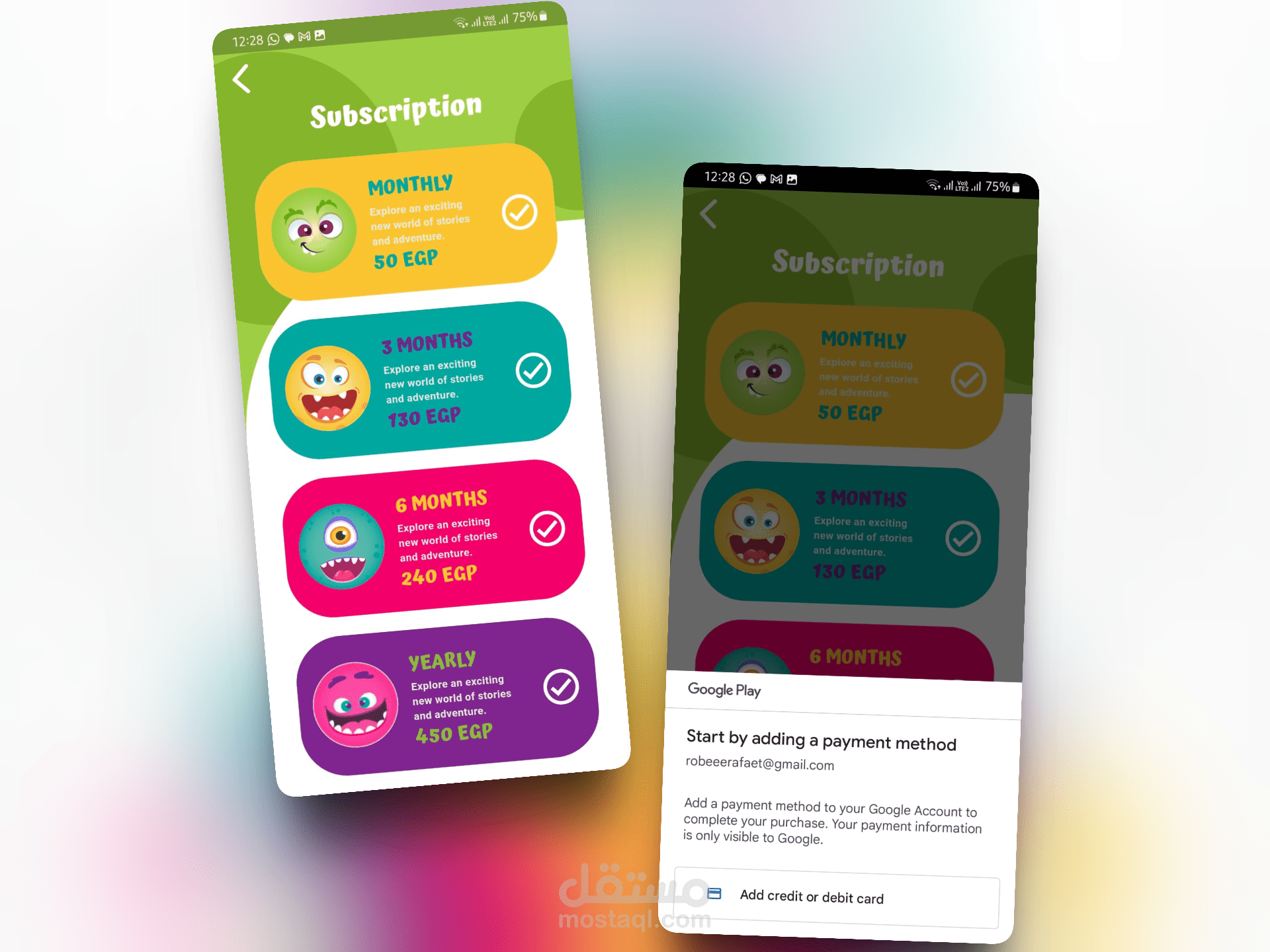 يوفر التطبيق بعض الكتب المجانية للتصفح، بالإضافة إلى خطط اشتراك مرنة تشمل الشهرية، والربع سنوية، والسنوية، لتقديم محتوى مستمر ومتنوع للأطفال. يمكن للمستخدم تحميل الكتب وقراءتها بدون اتصال بالإنترنت، مع نظام حماية وتشفير يضمن استخدام المحتوى حصريًا داخل التطبيق.