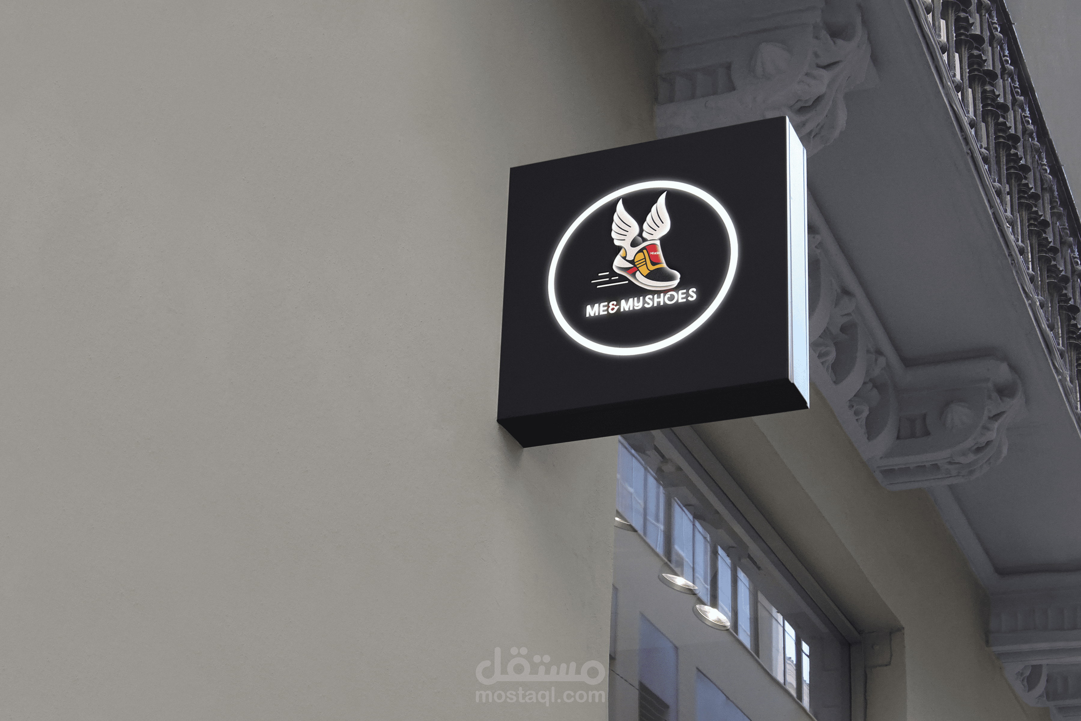 شعار مصمم لموقع بيع احذية يستهدف فئة الشباب لذلك استخدمت الالوان الاحمر والاصفر للفت الانظار الي الشعار