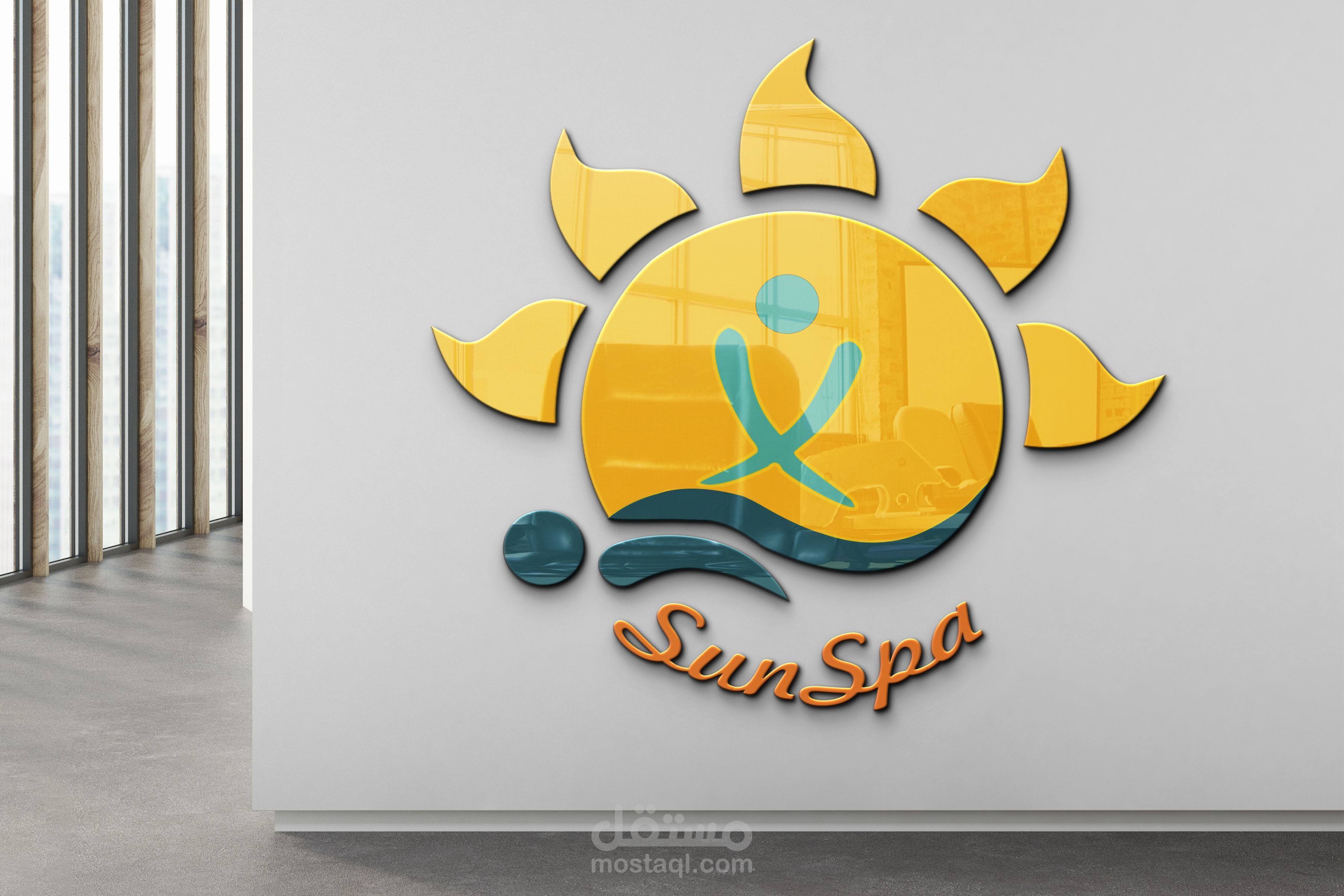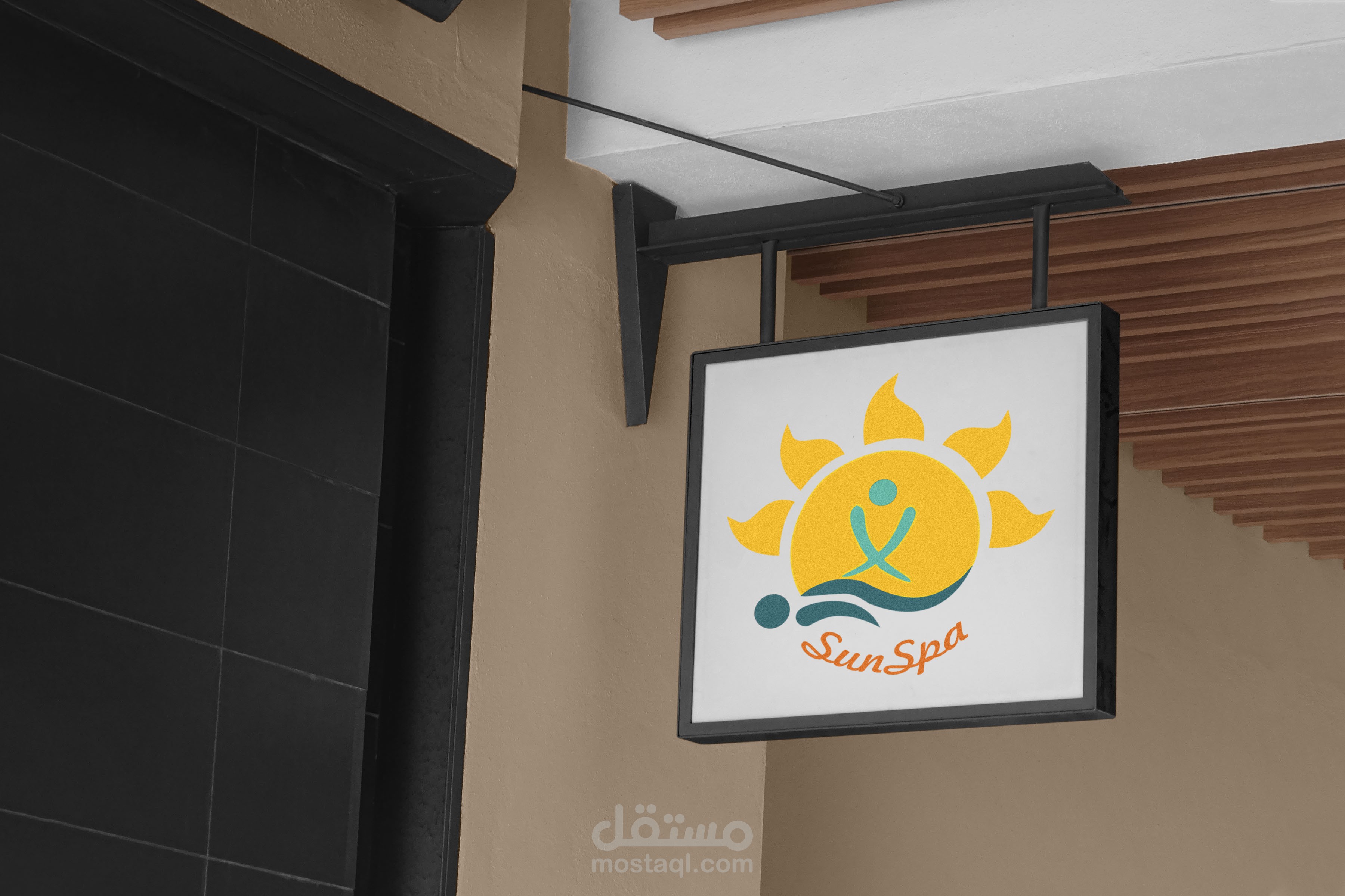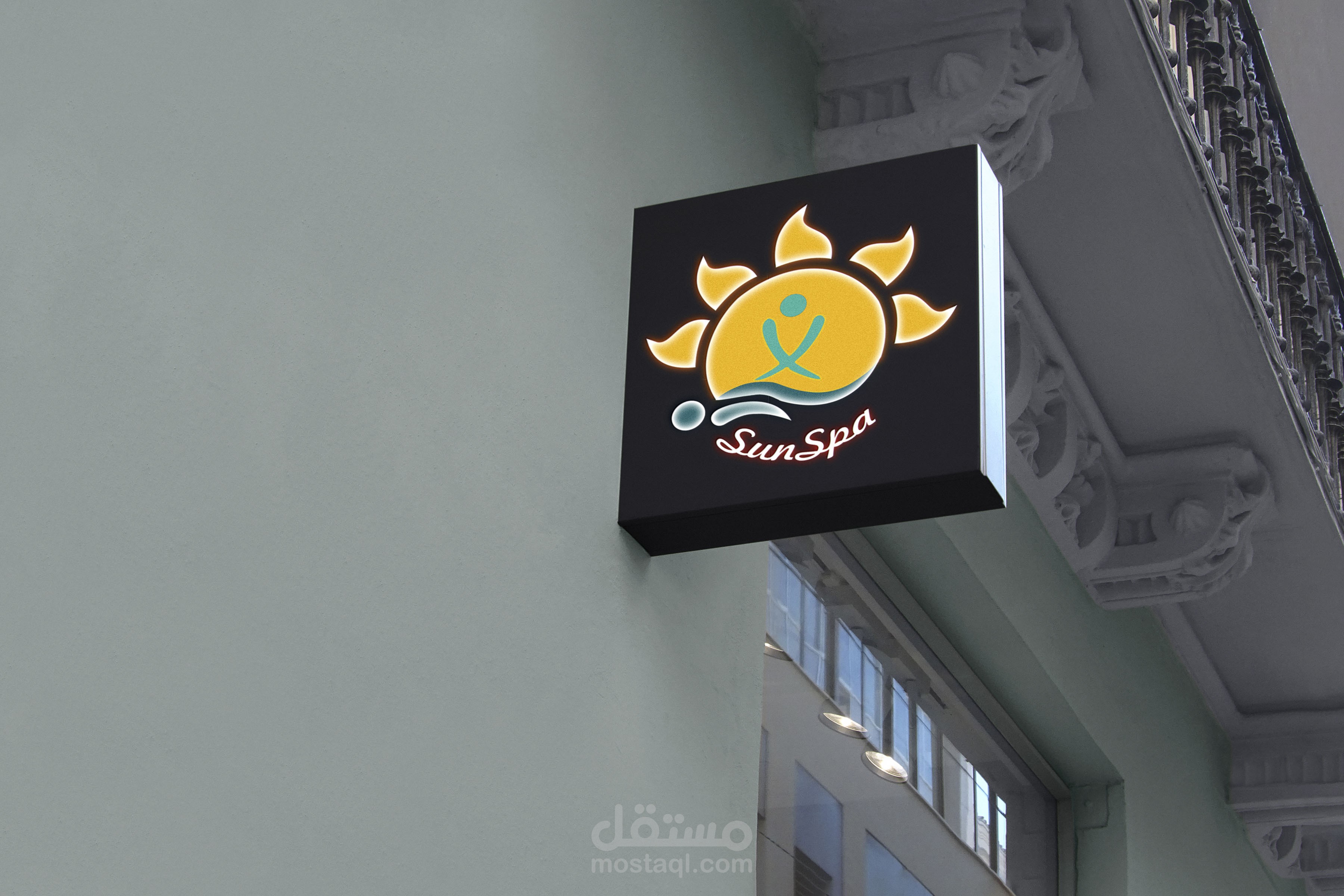 لوجو لسبا في المملكة العربية السعوديةلقد استخدمت الفكره من اسم المكان حيث دمجت عامل المساج والعميل مع الشمس ليوصل الفكرة بكل بساطة وجمال مع اللون الازرق الفاتح مع العامل يدول علي الاسترخاء والراحة وهذه وظيفة المكان