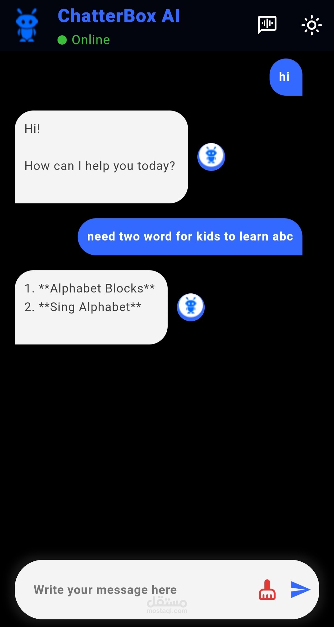 تم تصميم تطبيق ChatterBox-AI لمساعدة المستخدمين على الدردشة باستخدام الذكاء الاصطناعي مثل chatGpt بكفاءة والبقاء منتجين طوال اليوم.