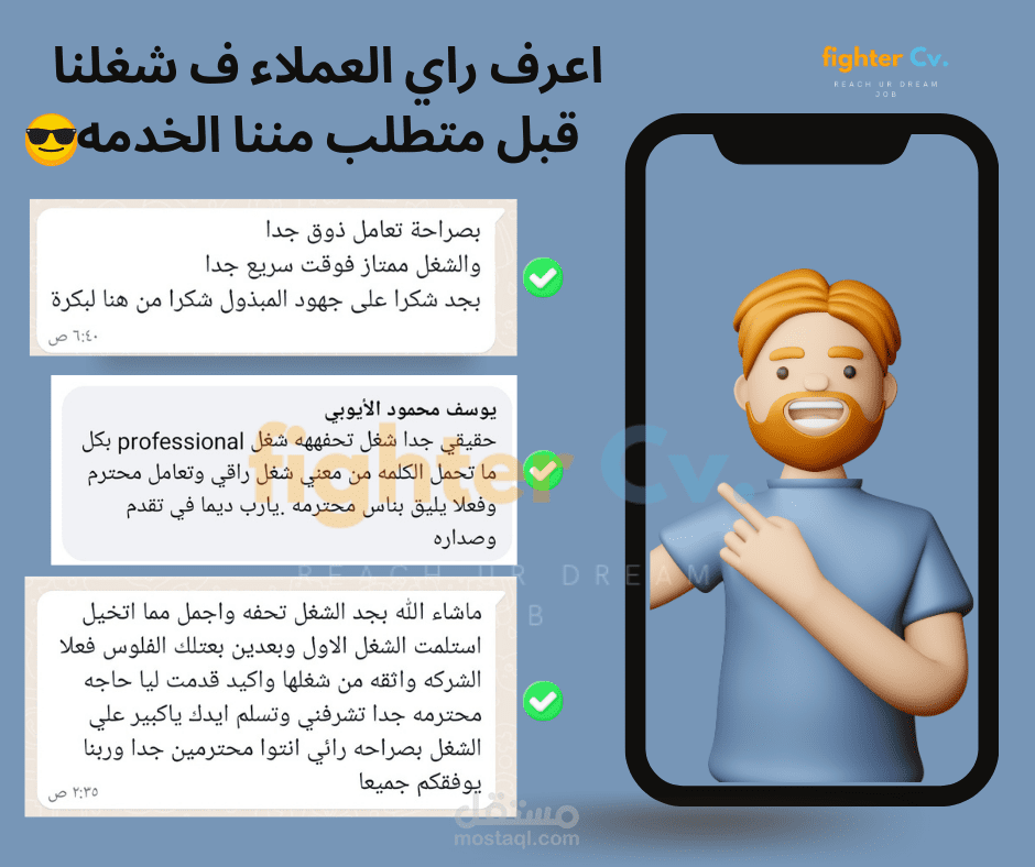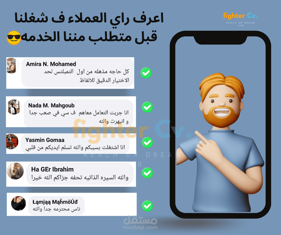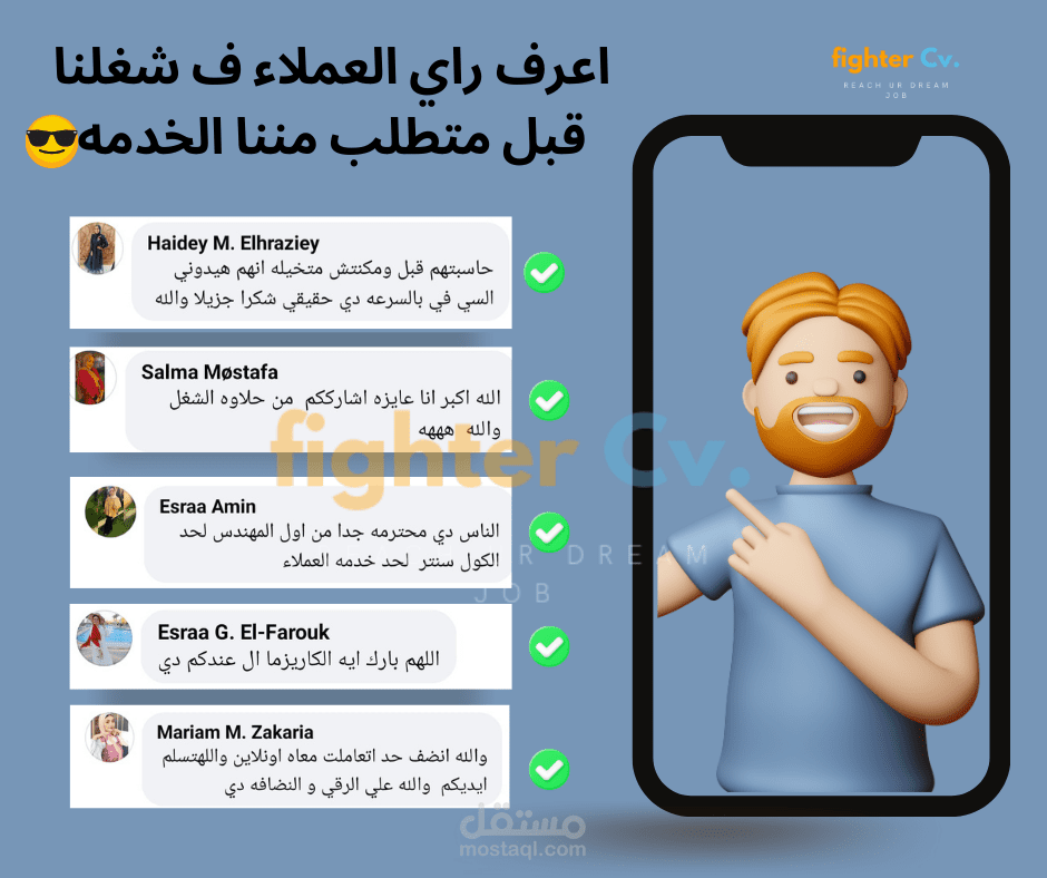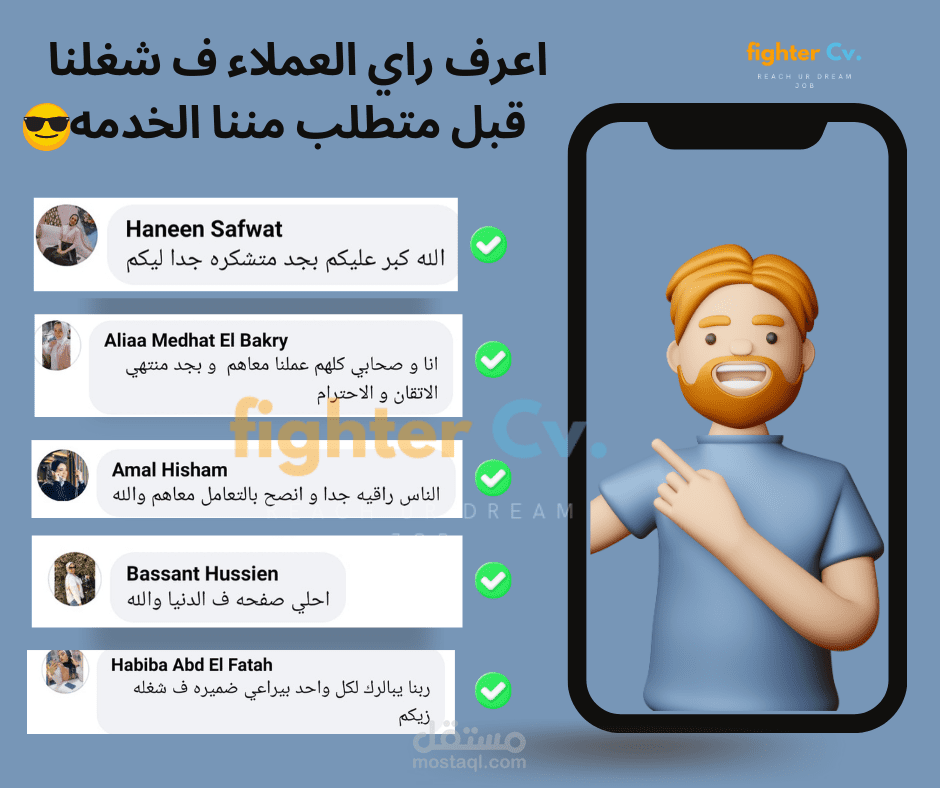 قام احد صاحب الشركات بطلب تصميم لفيس بوك يوضح اراء العملاء في الخدمة التي يقدمها فقمت بتنفيذ هذا التصميم و الحمد لله اعتقد انه وافي ف توضيح اراء العملاء و جذاب من حيث التصميم