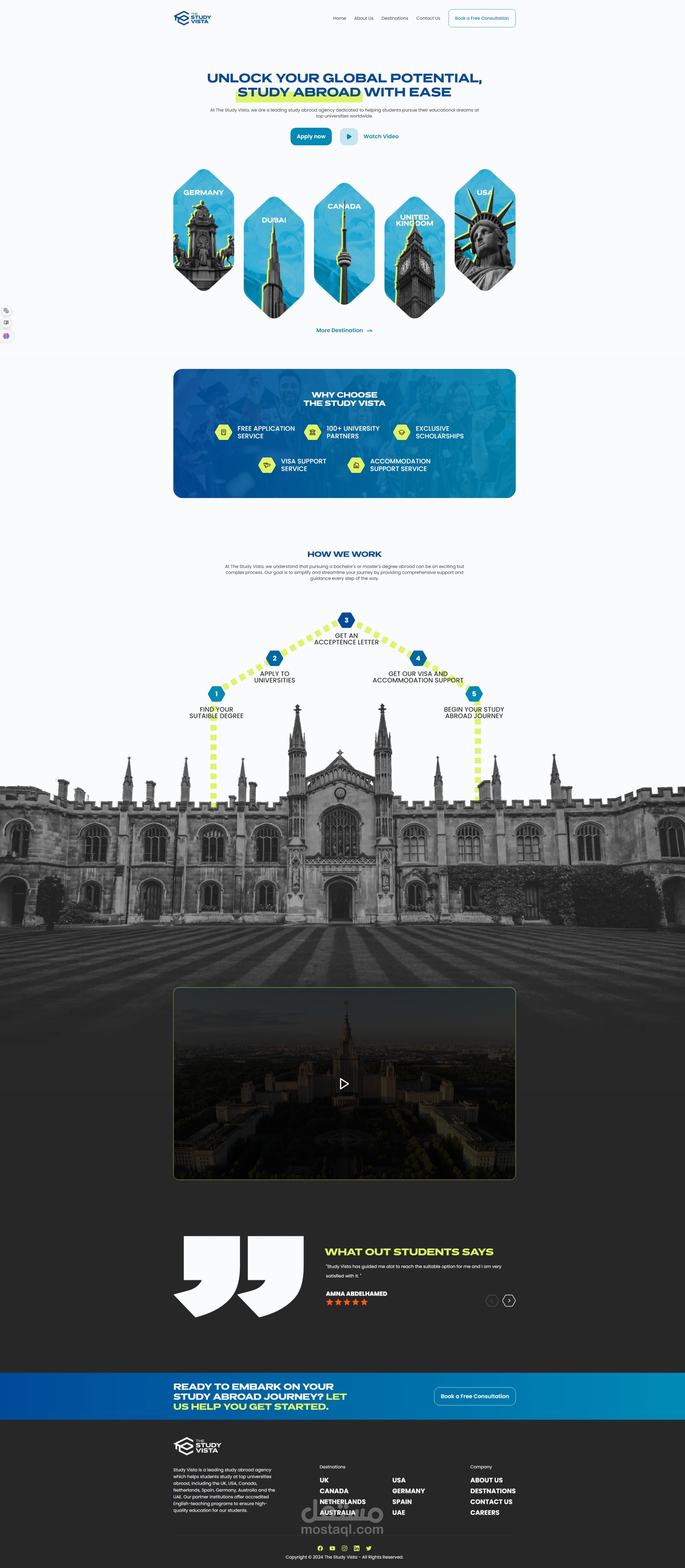 منصة توفر فرصة للسفر والدرسة في الخارج في الجامعات الدولية المعروفة في دول مثل المملكة المتحدة، أمريكا، كندا، هولندا، إسبانيا، ألمانيا، أستراليا، ودولة الإمارات.