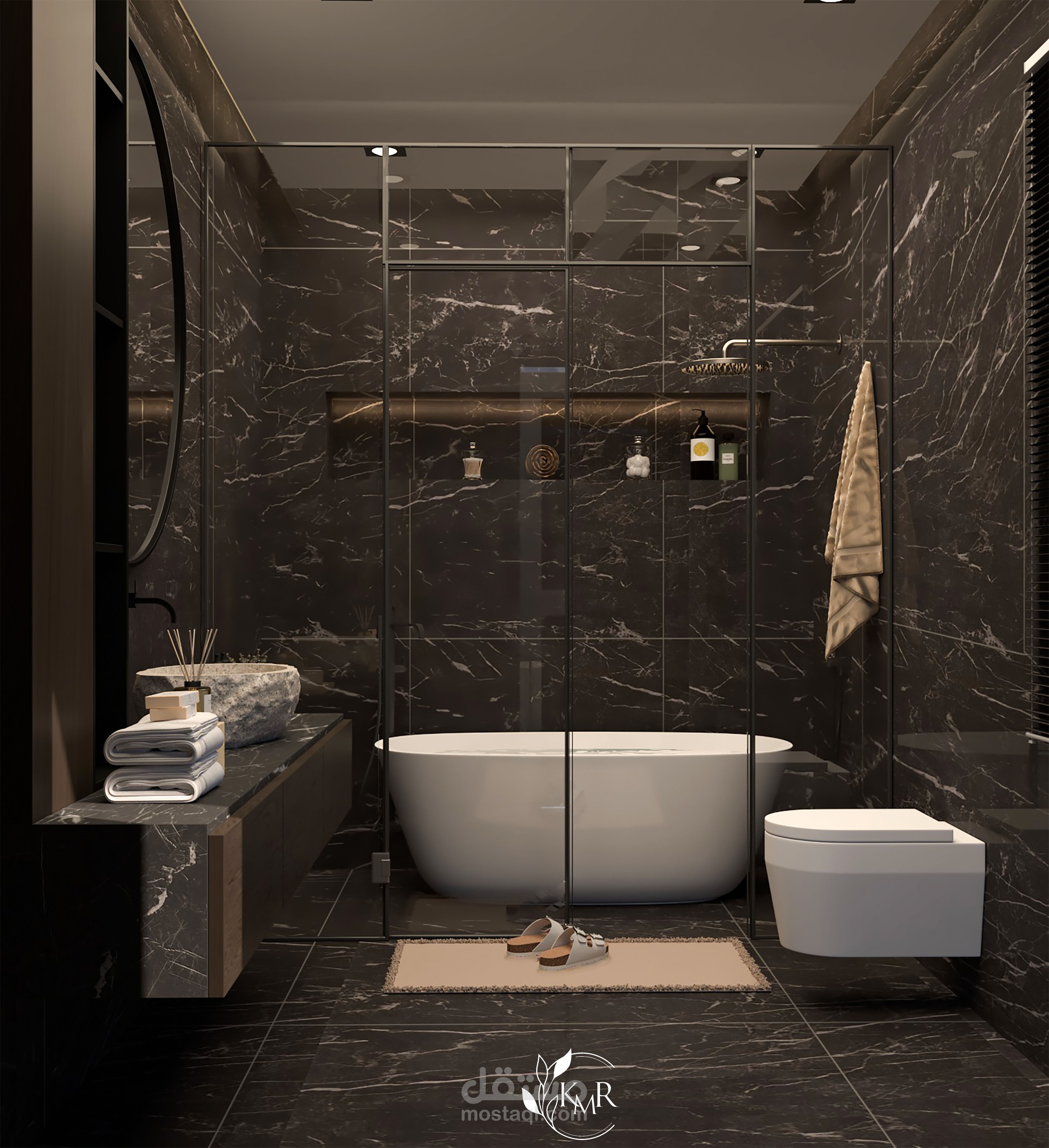 A sleek and contemporary bathroom design blending luxury, comfort, and natural textures perfectly crafted to elevate everyday living.