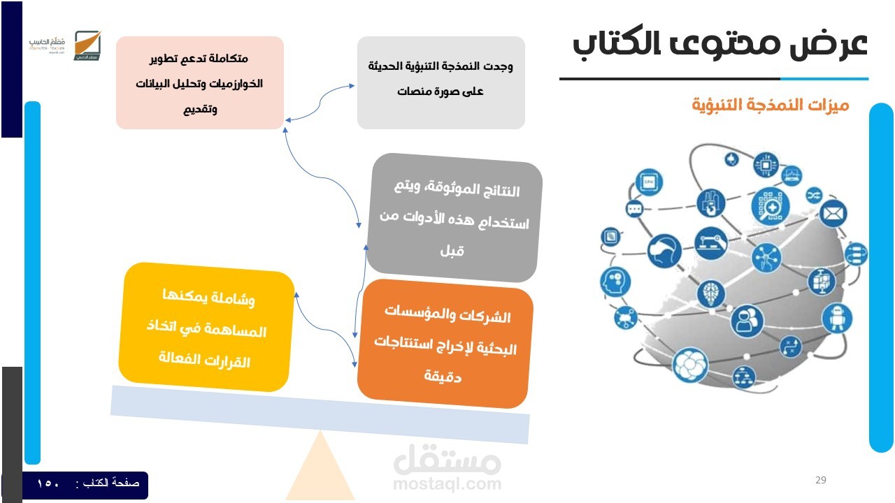 النتيجة: العرض يقدم محتوى واضح ومبسط عن نمذجة البيانات، مما يجعله مثاليًا للتدريب، الاجتماعات التقنية، والدورات التعليمية.