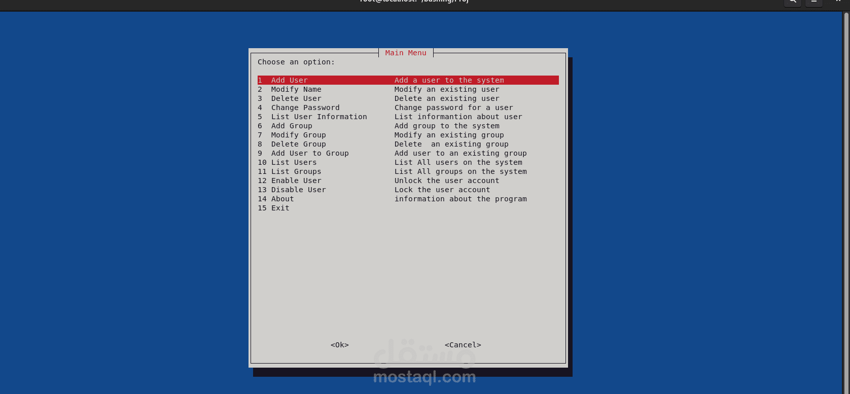 Use whiptail to create a graphical menu interface and link it to the corresponding functions.