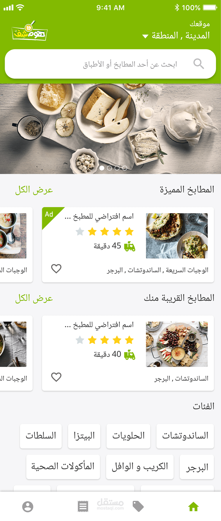 تطبيق هوم شيف مثل اطلب وهنجر استشين ( IOS )