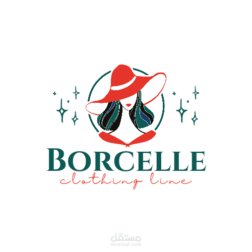 تصميم شعار **"Borcelle Clothing Line"** يتميز بأناقة وجاذبية فريدة تعكس روح الموضة والرقي. الشعار يتضمن صورة امرأة أنيقة ترتدي قبعة حمراء، مما يعزز من الهوية الجمالية للعلامة التجارية ويجذب الانتباه بشكل ملفت. استخدام الألوان الأحمر والأخضر الداكن يضفي شعوراً بالفخامة والتميز، بينما يرمز الأسلوب الفني العصري إلى التفرد والابتكار في صناعة الملابس.
