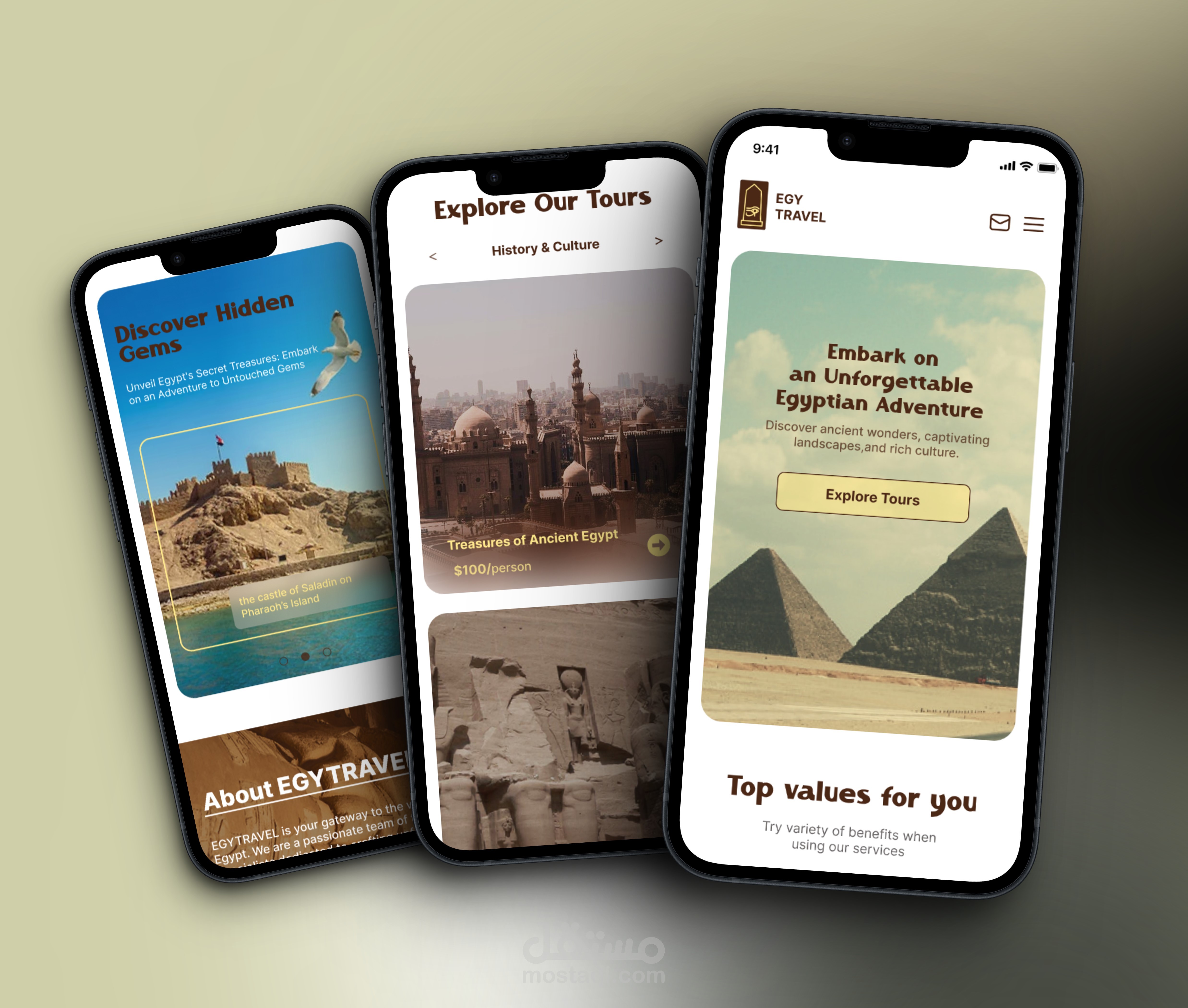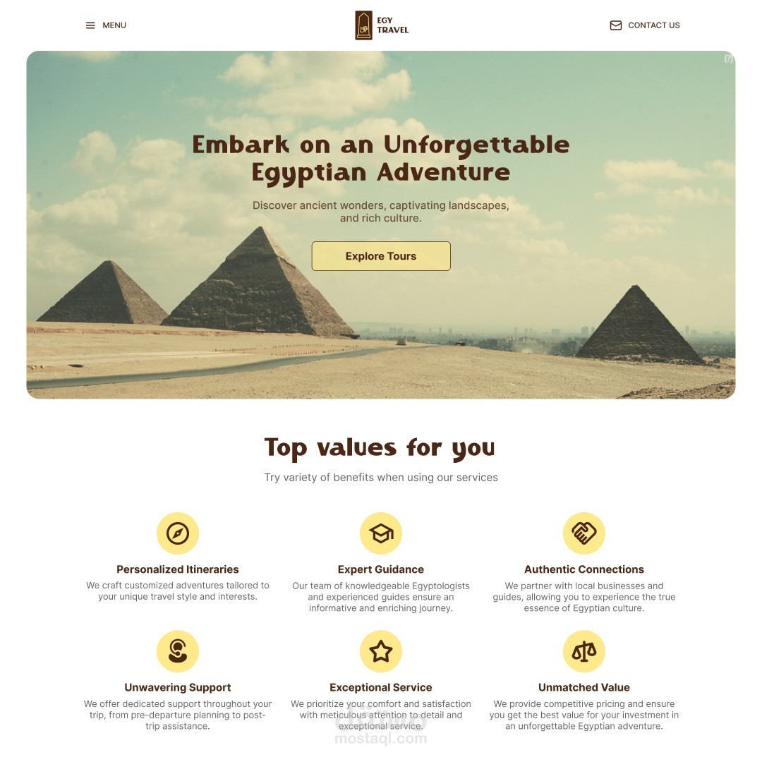 Visual Design: Created a visually appealing design with a desert-inspired color palette and Egyptian-themed graphics.