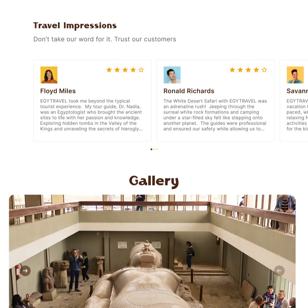 Gallery Integration: Implemented a gallery feature to showcase stunning images of Egyptian landmarks.