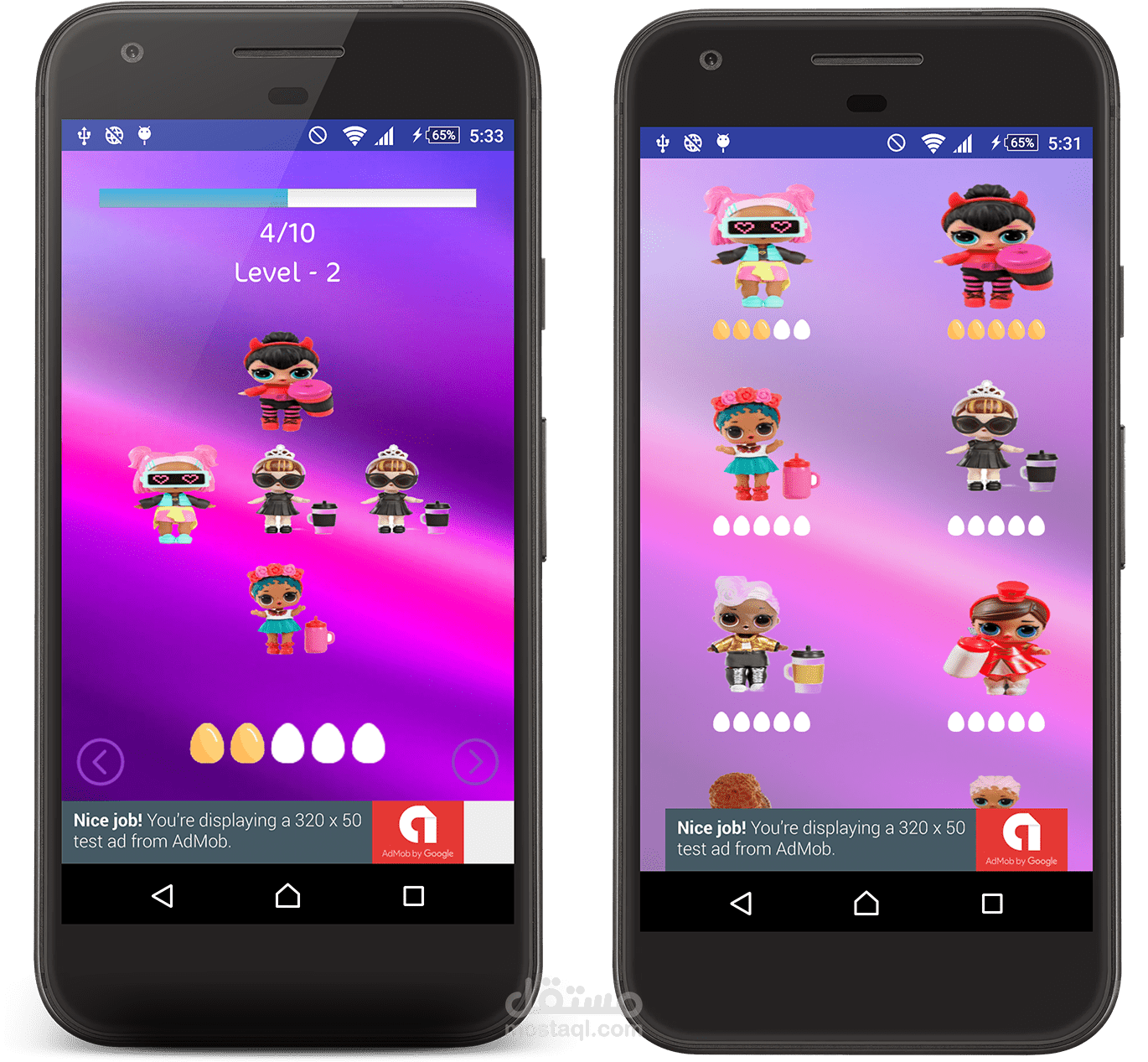 لعبة الدمى للأطفال: مستويات متعددة * عداد الوقت المتبقي * مؤشر مخصص يعرض نسبة الإجابات الصحيحة* مؤثرات صوتية و حركية متنوعة.