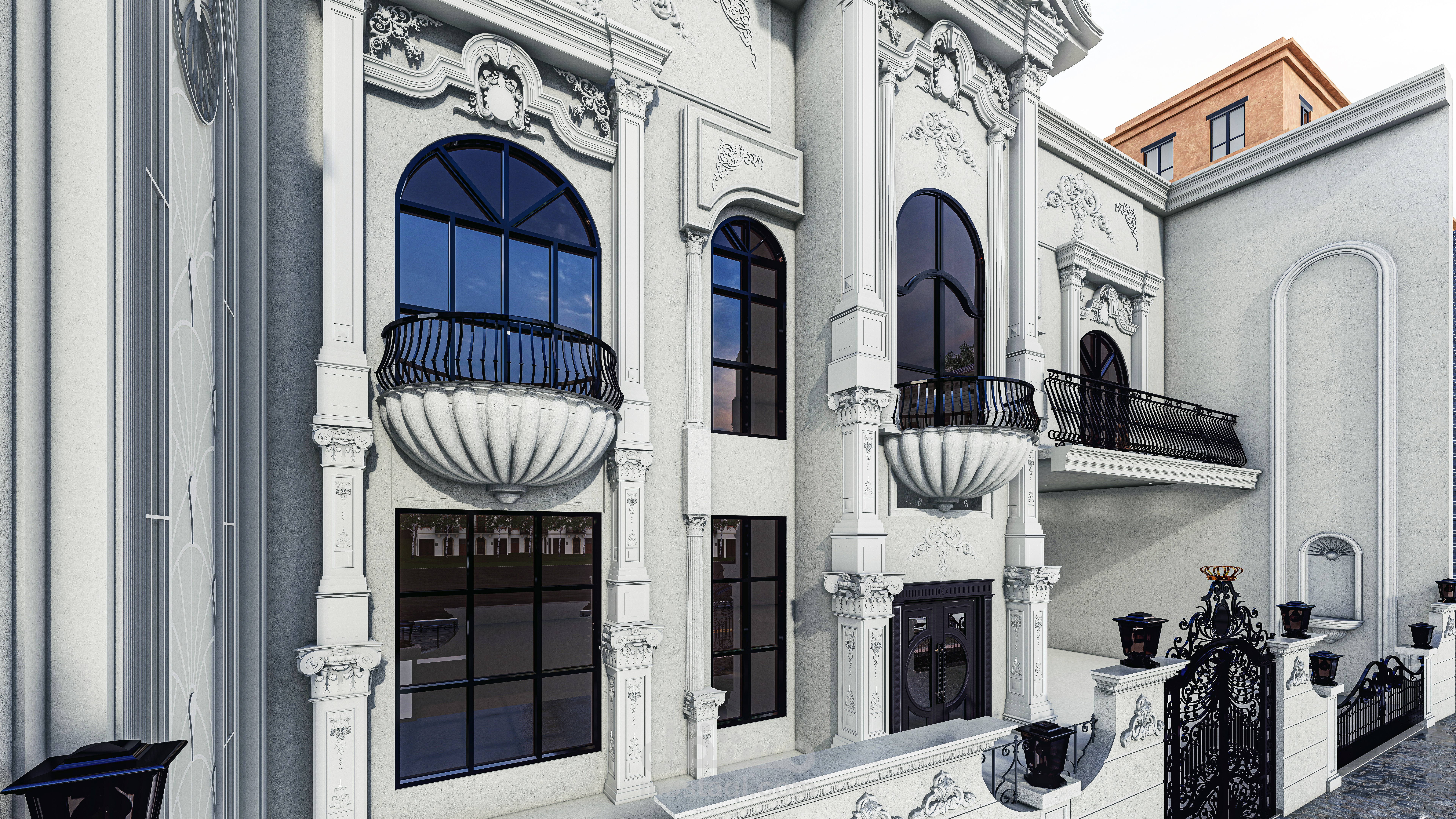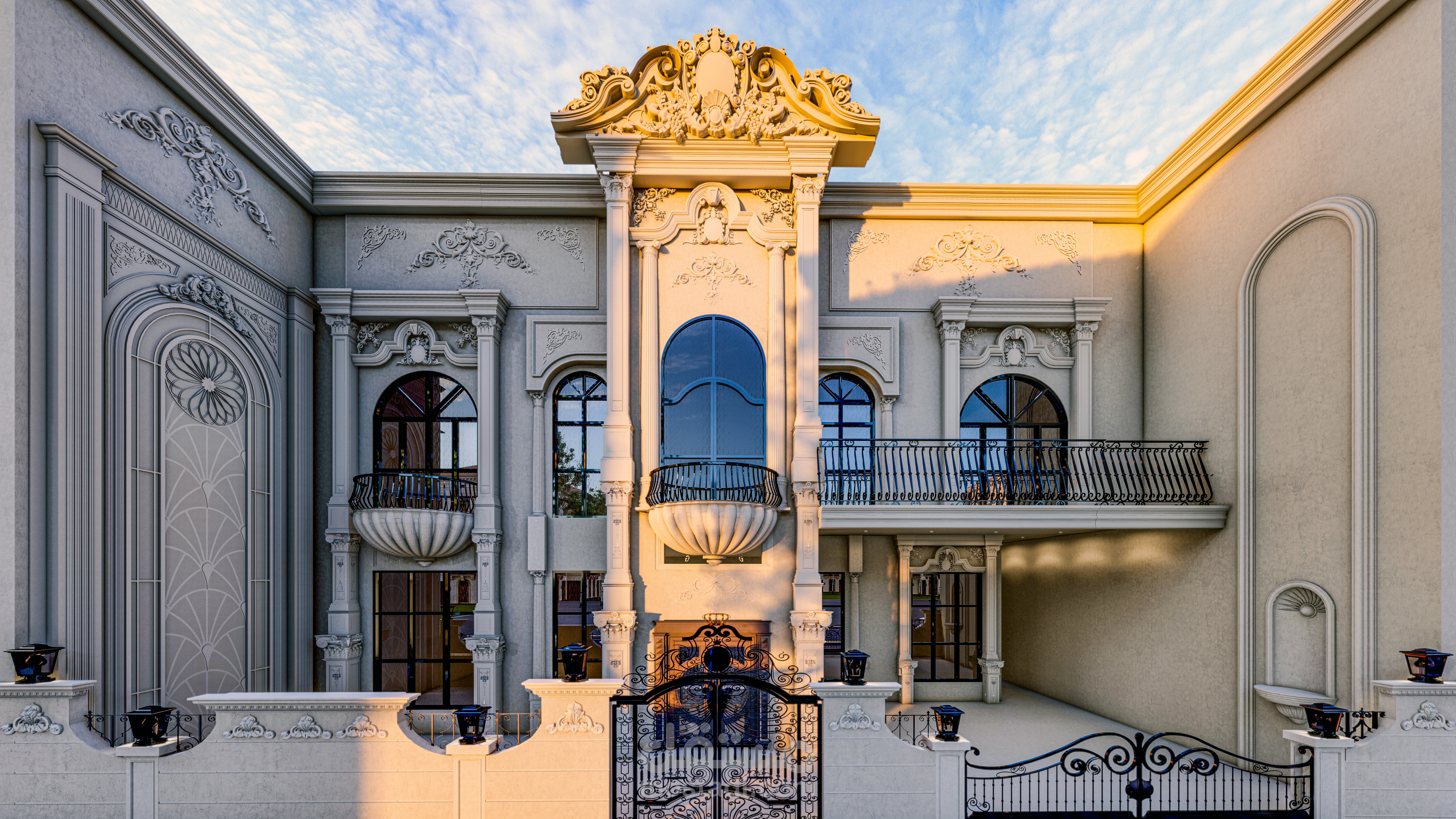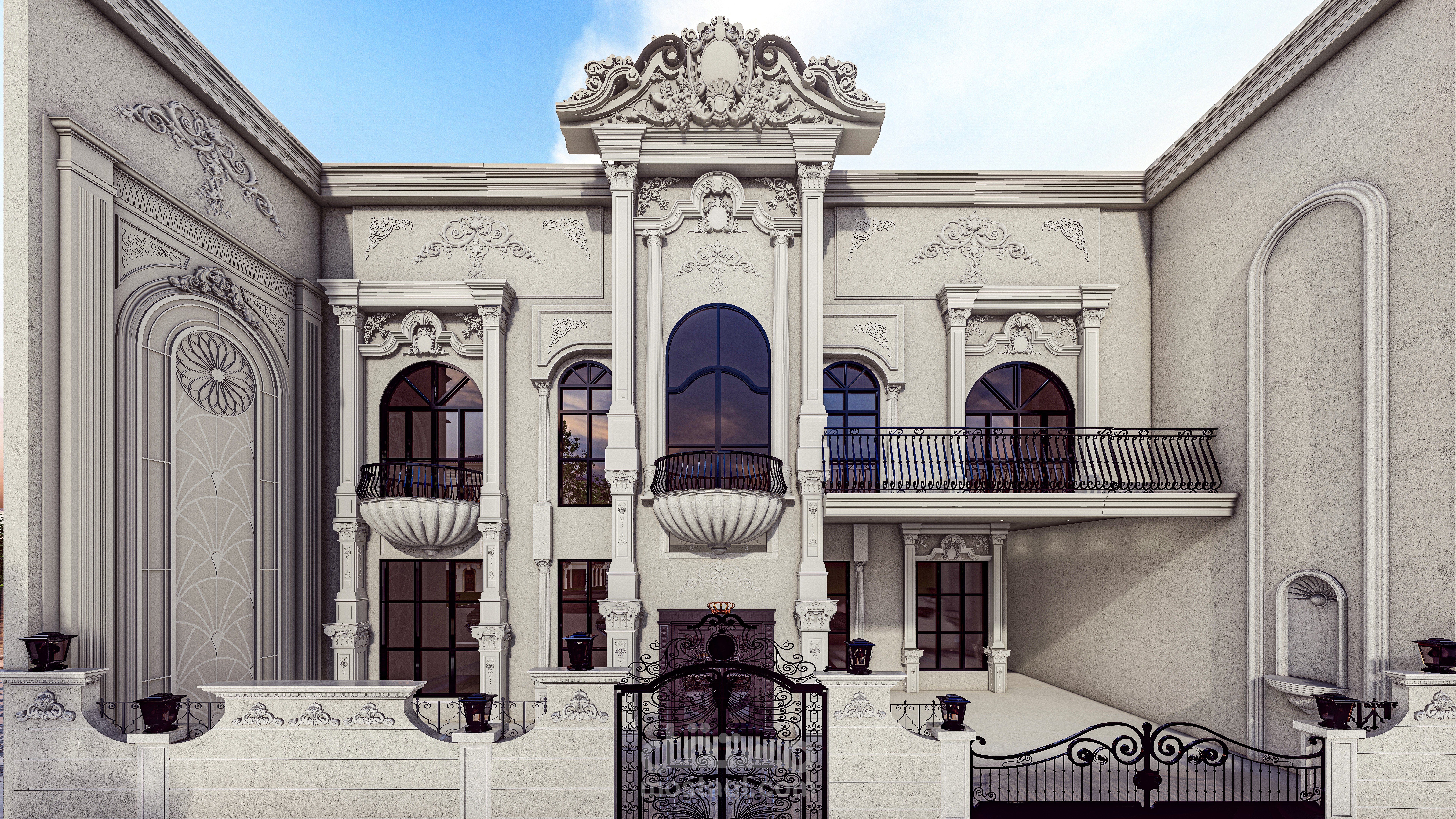 تصميم واجهة كلاسيك لفيلا في دولة الامارات