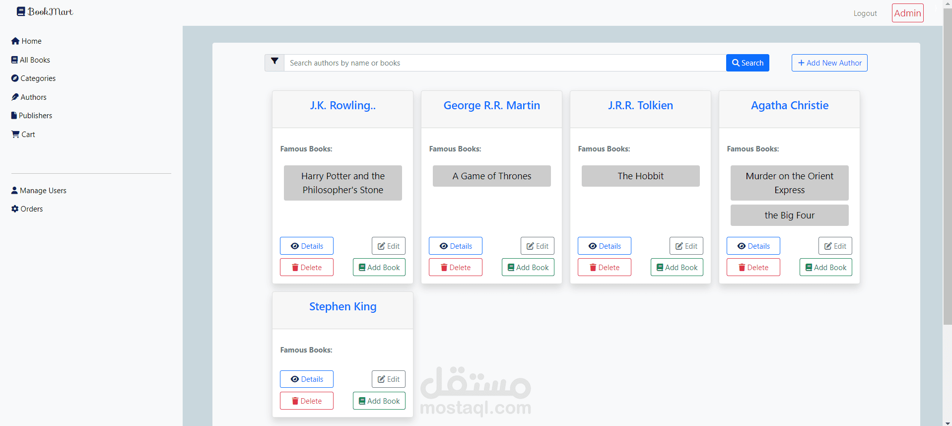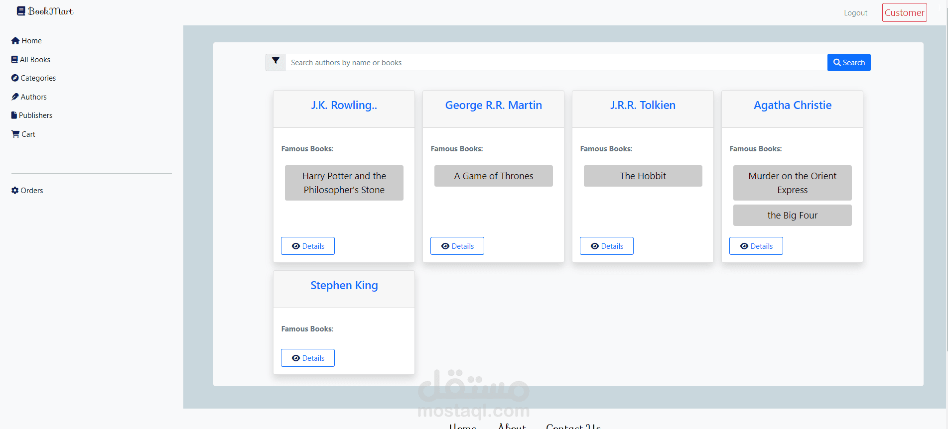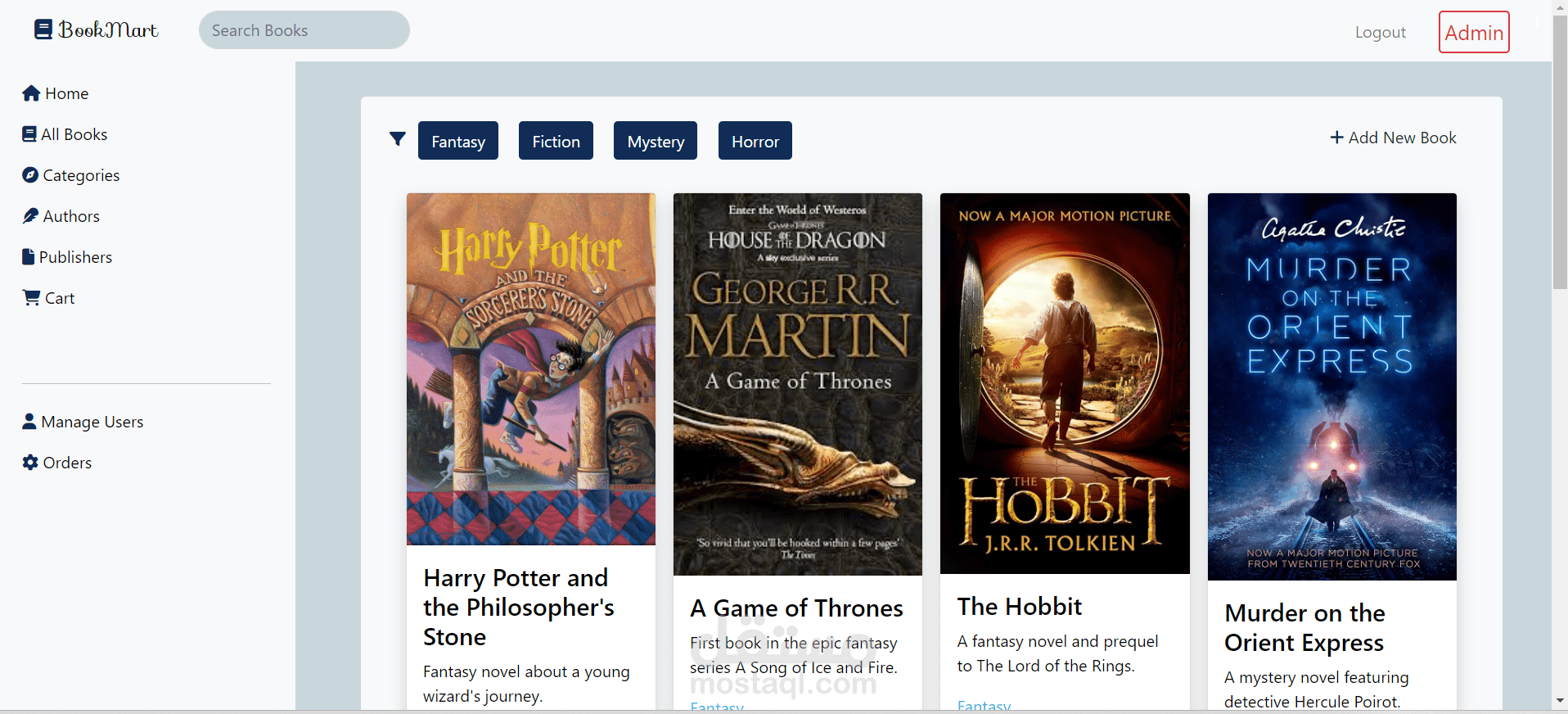 book store website that shows all books and and can filter the books by name .author ,categories and publisher