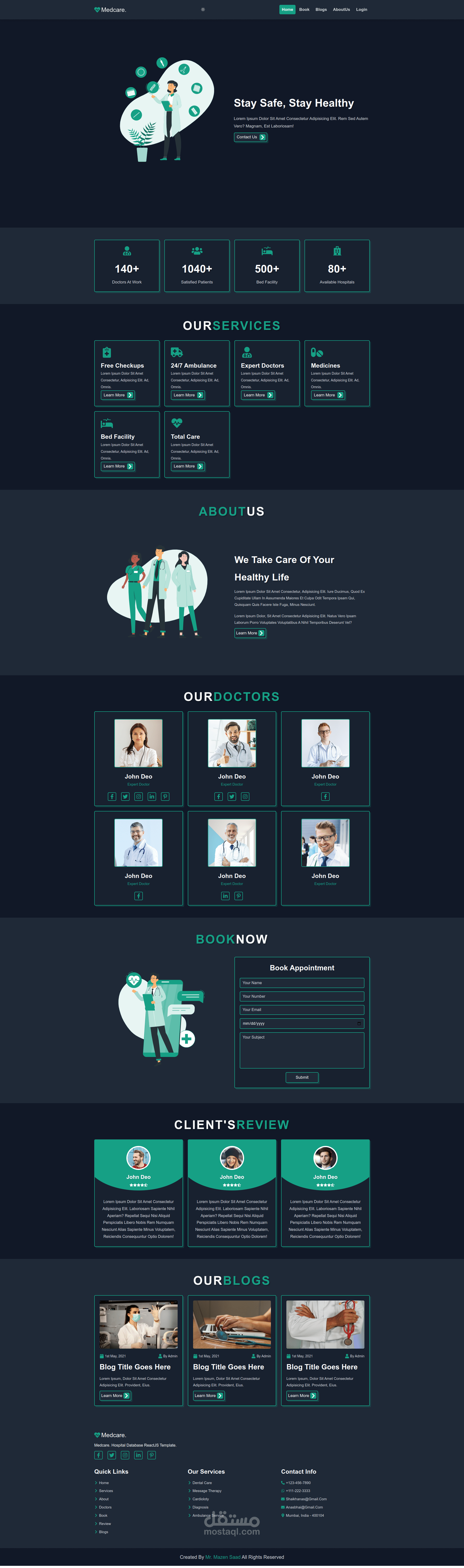 Medcare هو موقع طبي متكامل يهدف إلى توفير الرعاية الصحية والخدمات الطبية بطريقة سهلة وسريعة. يتيح للمستخدمين البحث عن الأطباء المتخصصين في مختلف المجالات الطبية، حجز المواعيد الطبية عبر الإنترنت، والحصول على الاستشارات الطبية عن بُعد. كما يقدم الموقع معلومات صحية موثوقة ونصائح طبية من مصادر معتمدة لضمان صحة ورفاهية المستخدمين. Medcare يسعى ليكون شريكك الصحي الموثوق به لتلبية كافة احتياجاتك الصحية.