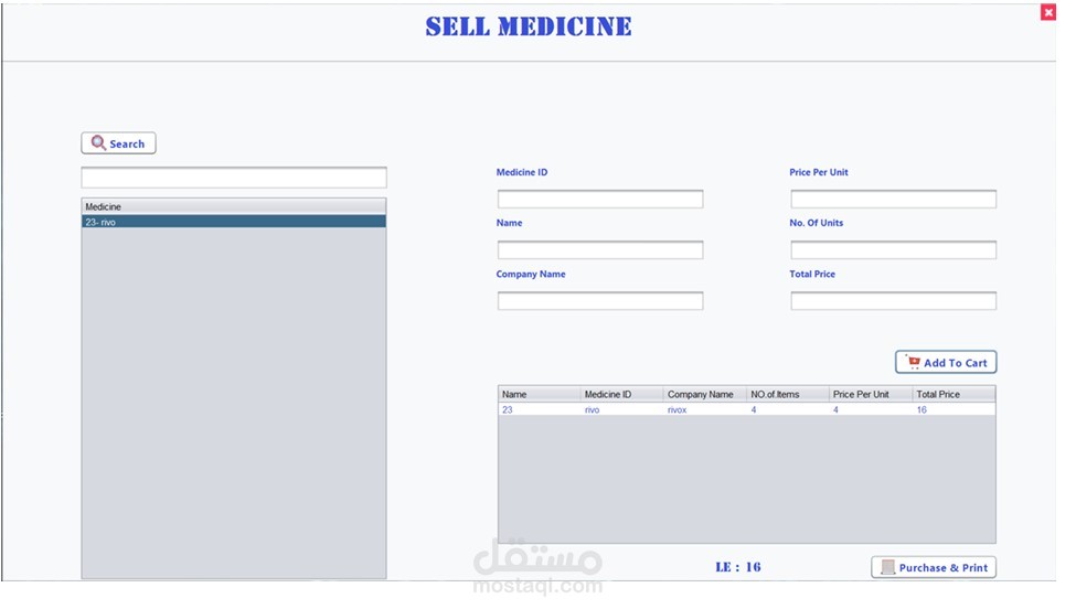 medications to customers. It includes features for tracking stock levels, generating reports,