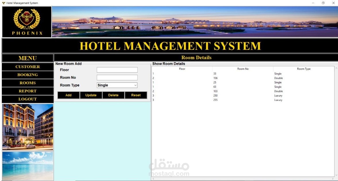 Inventory Control: Manage room availability, customer services, and detailed room information such as room types to maintain operational efficiency.