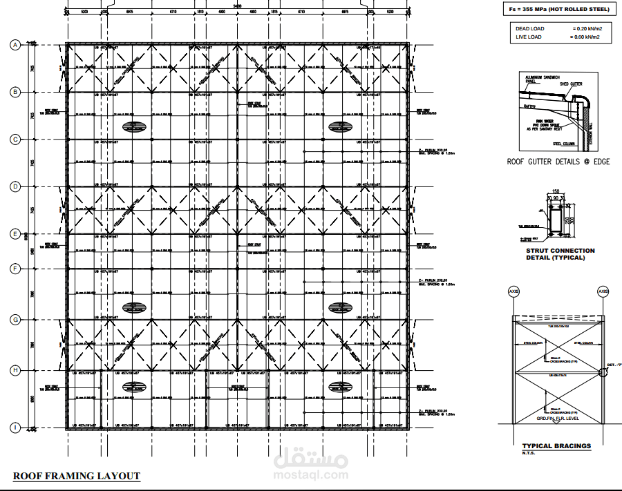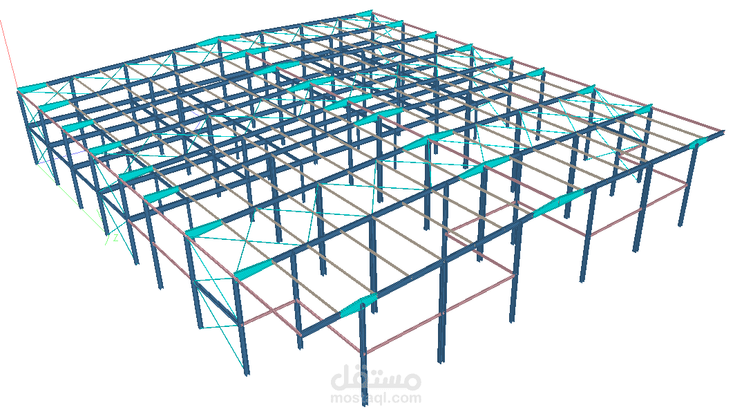 لقد قمت بالتصميم الانشائي ل هنكار معدني ابعاده 53متر*60متر بارتفاع 10.8متر وتمت ضمن المواصفات والشروط المطلوبة ومطابقة للسلامة الانشائية وفق الكود الامريكي AISC360.16 وتمت الدراسة على برنامج STAAD PROودرست الوصلات المعدنية على برنامح LIMCON وIDEASTATICA