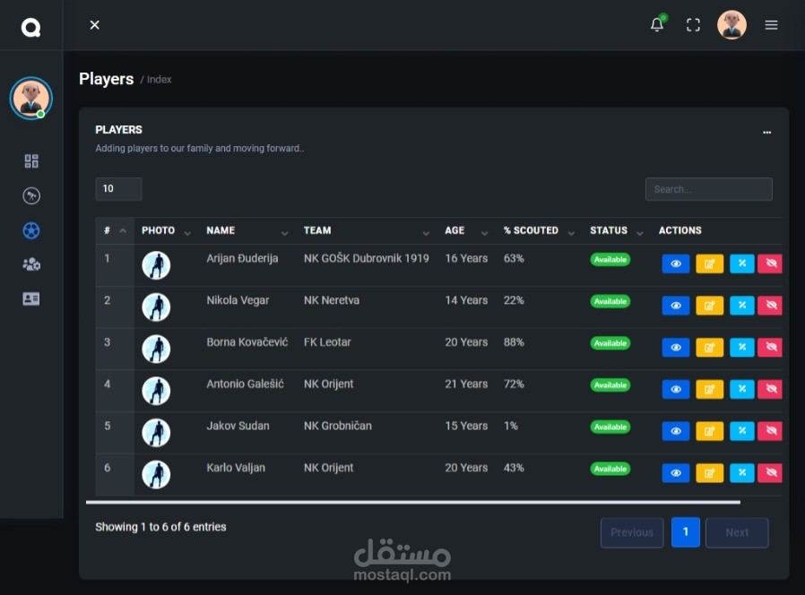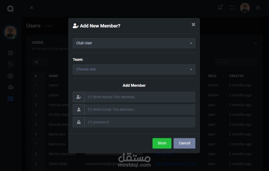 The System Have (Demand, Player, Clubs, Users) pages
