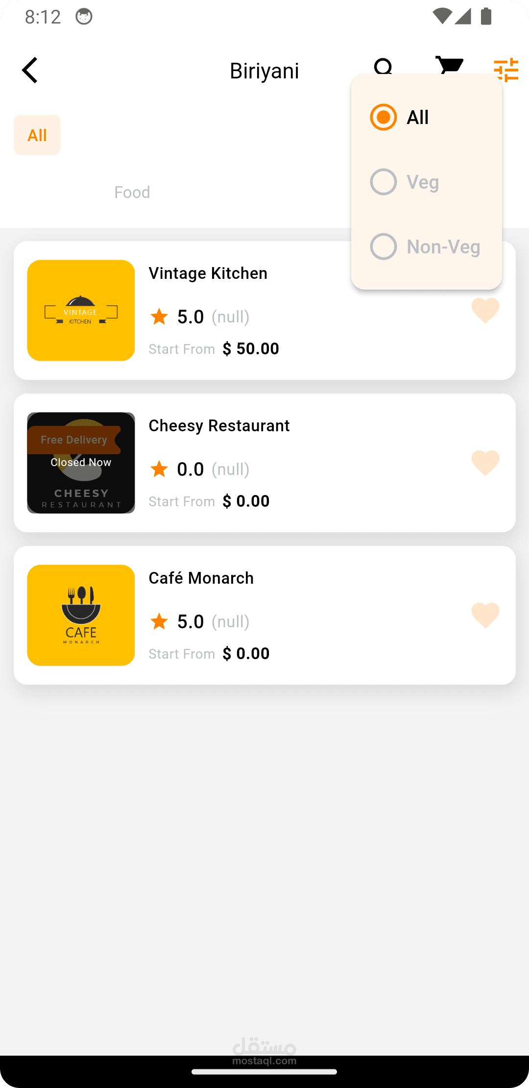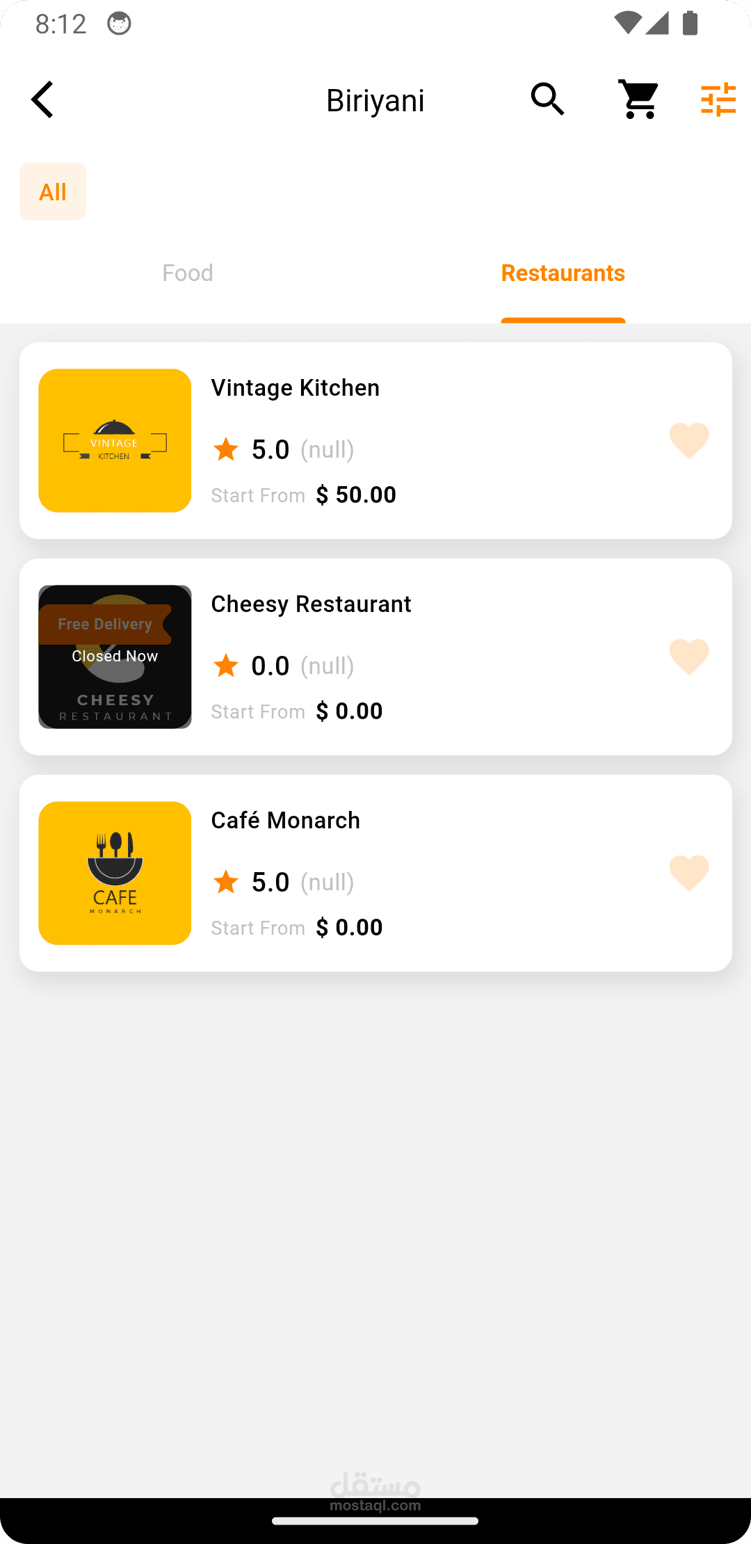 هذا الوصف يوضح الميزات الأساسية لتطبيق الطعام ويعكس استخدامك لتقنية Laravel كواجهة خلفية لتوفير تجربة مستخدم سلسة وقوية.